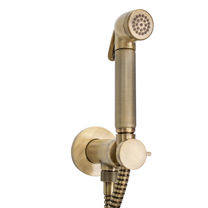 Смеситель Bossini Nikita E37008B.022 для биде бронза Комплект гигиенический:прогрессивный смеситель, лейка с клапаном подачи воды, шланг 1250 мм Материал лейки: латунь Гигиенический душ Bossini Nikita с прогрессивным смесителем в классическом дизайне в цвете бронза - несомненно станет отличным украшением вашей туалетной комнаты. Классику невозможно не любить.