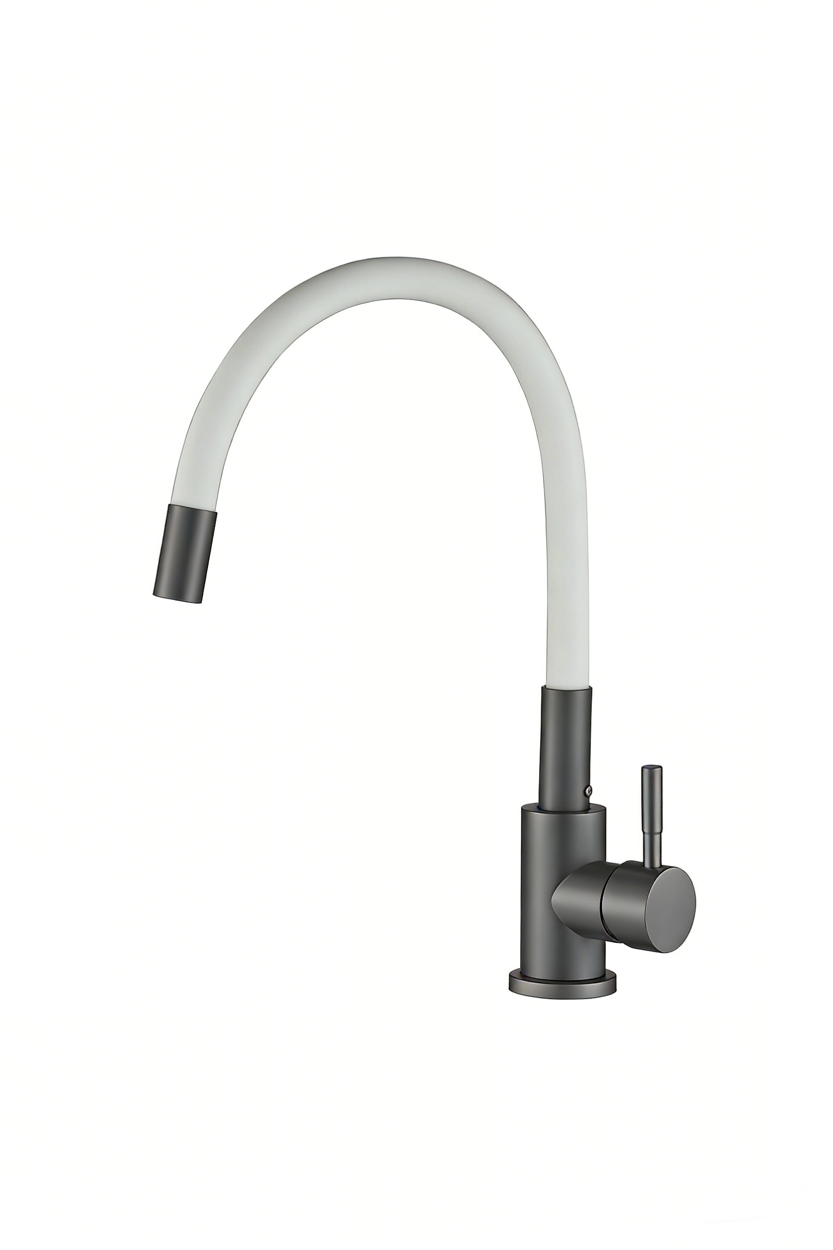 Атэна GG-W (ATENA GG-W) Cмеситель для кухни, цвет ГРАФИТ из нержавеющей стали с белым гибким изливом Ceruttispa