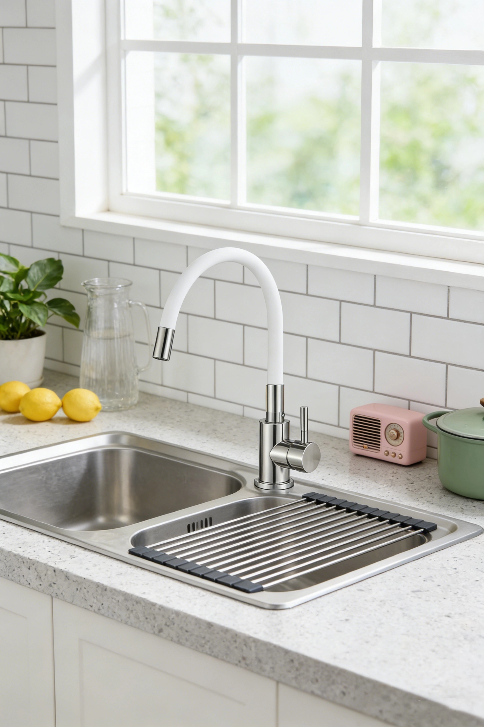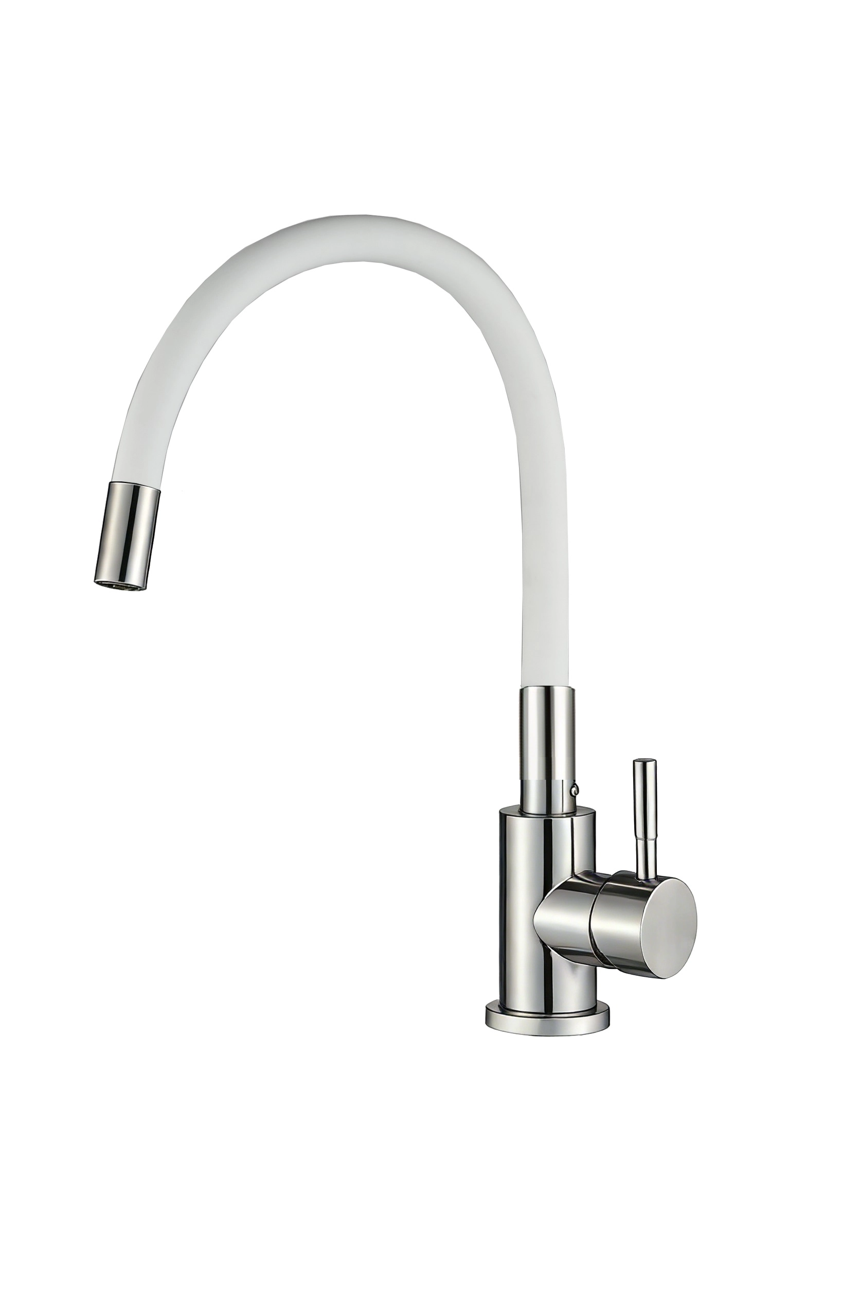 Атэна H-W (ATENA H-W) Cмеситель для кухни, цвет ХРОМ из нержавеющей стали с белым гибким изливом Ceruttispa
