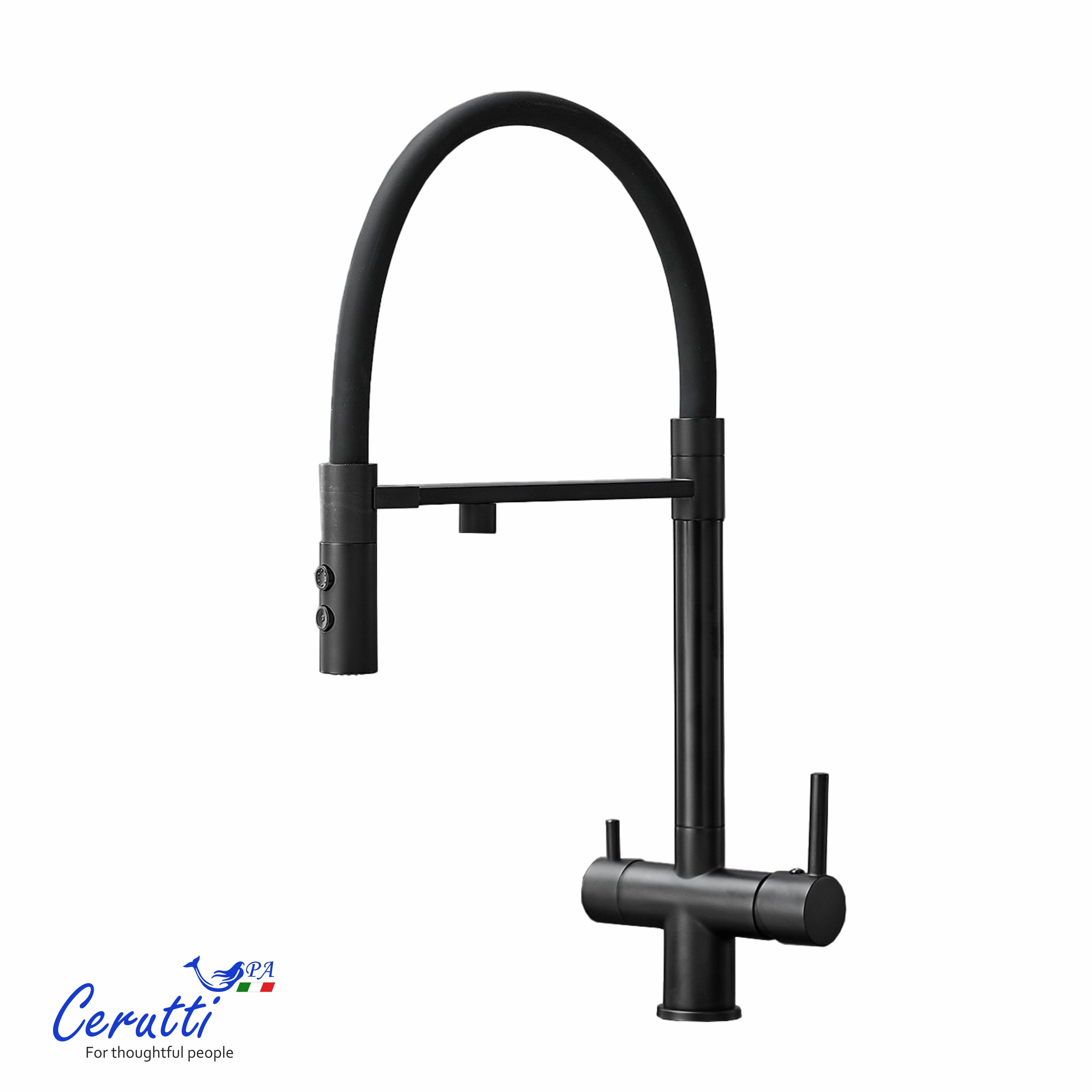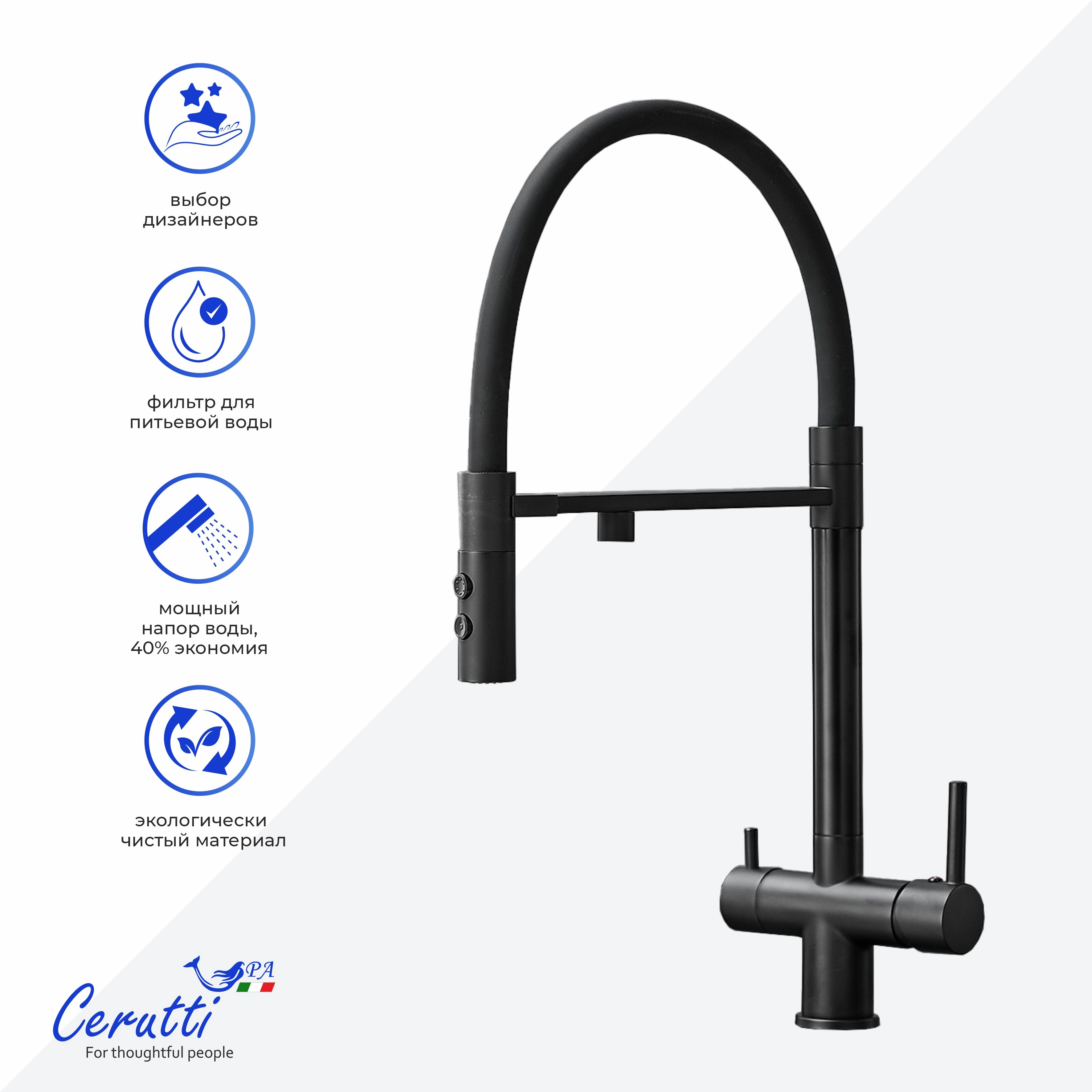 TORRE B Cмеситель для кухни, цвет ЧЕРНЫЙ МАТОВЫЙ, из нержаыеющей стали, с выходом для фильтрованной воды Ceruttispa