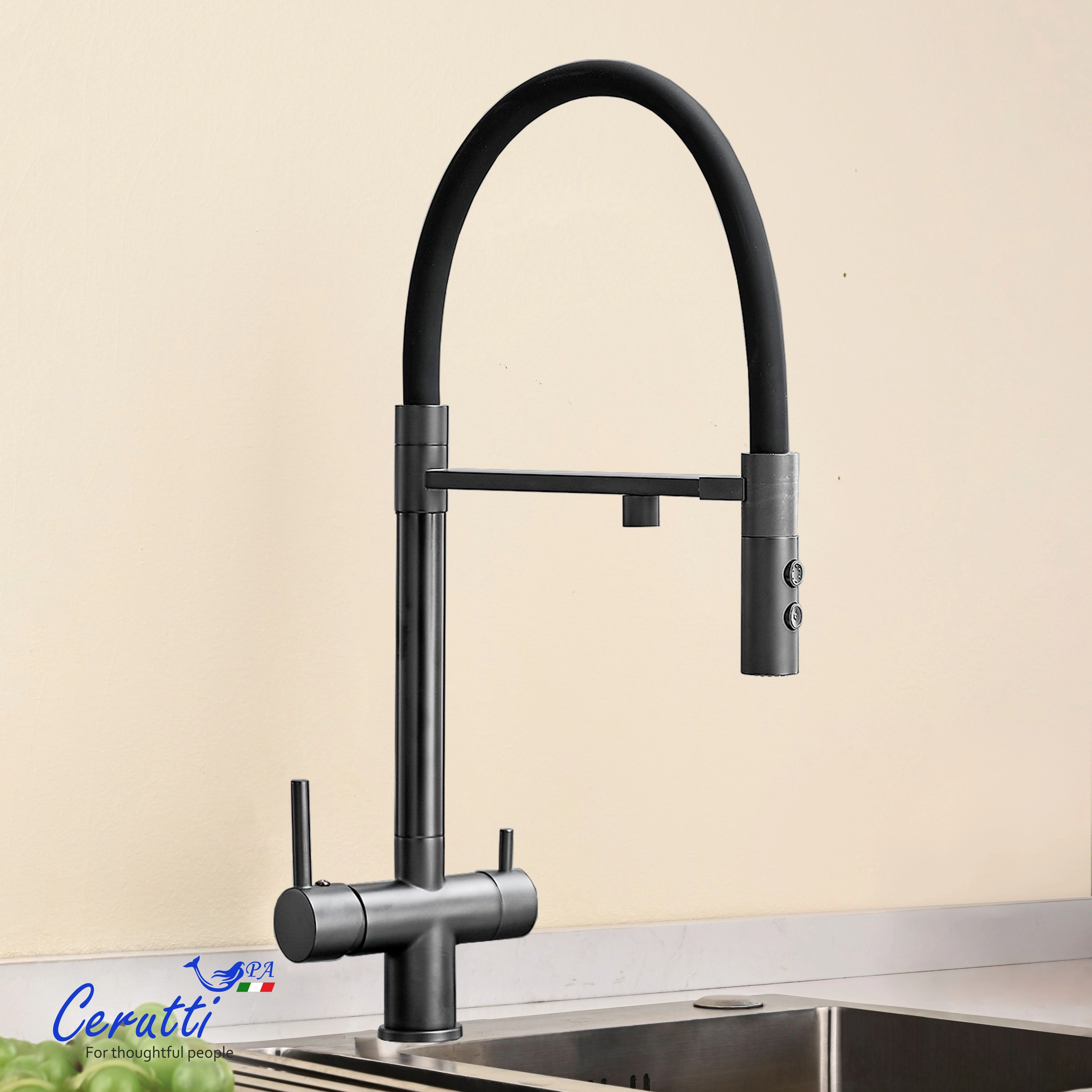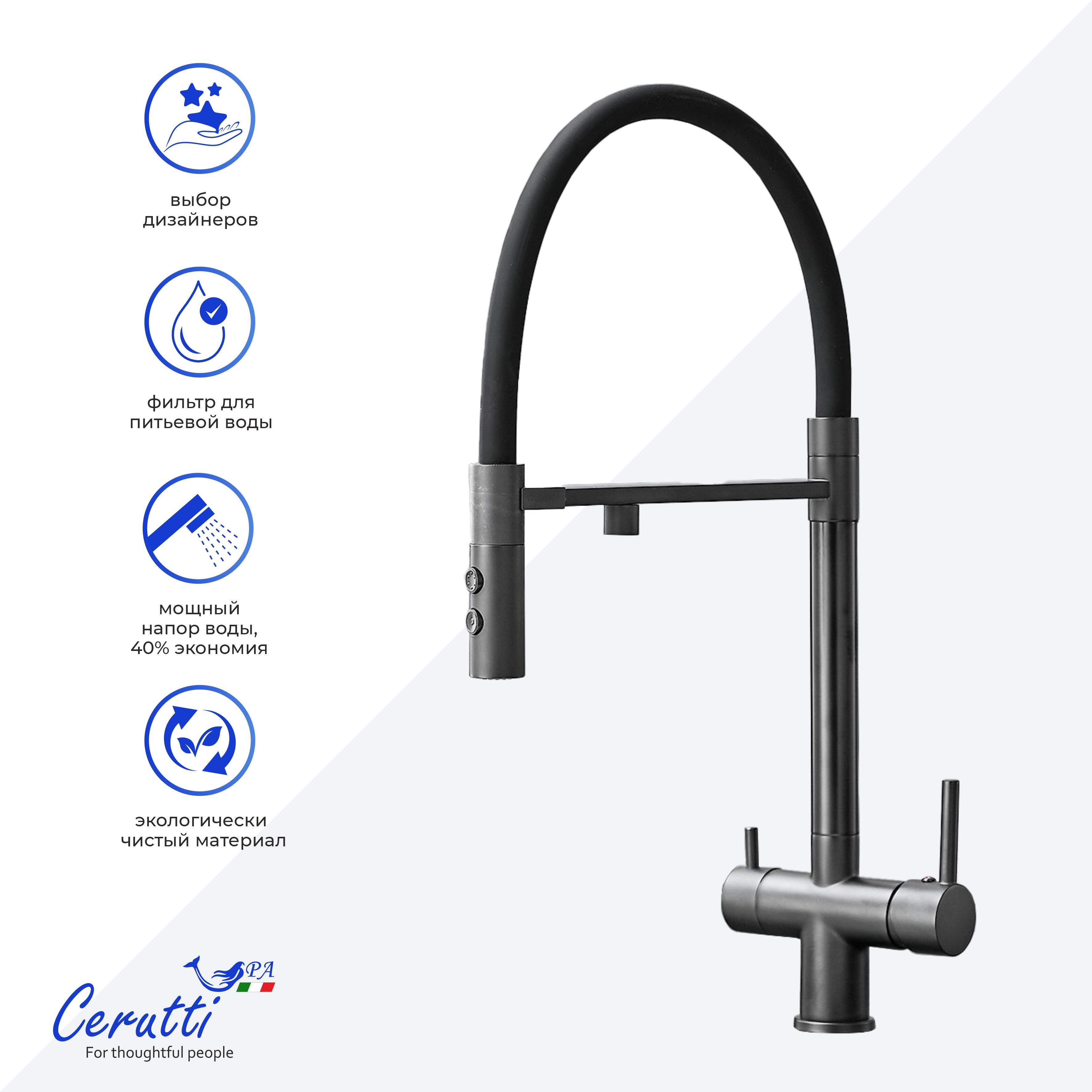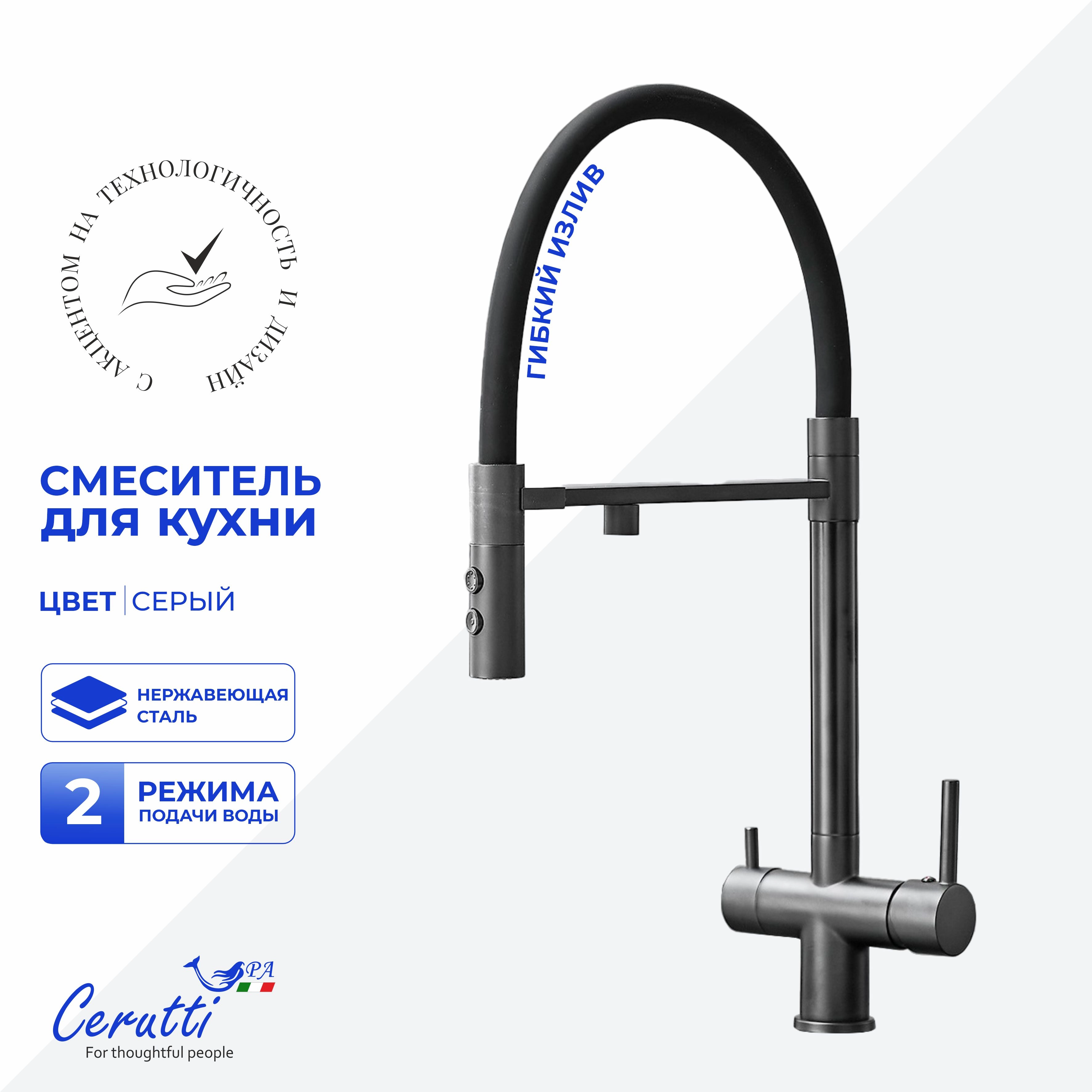 ORRE GR Cмеситель для кухни, цвет СЕРЫЙ, из нержаыеющей стали, с выходом для фильтрованной воды Ceruttispa