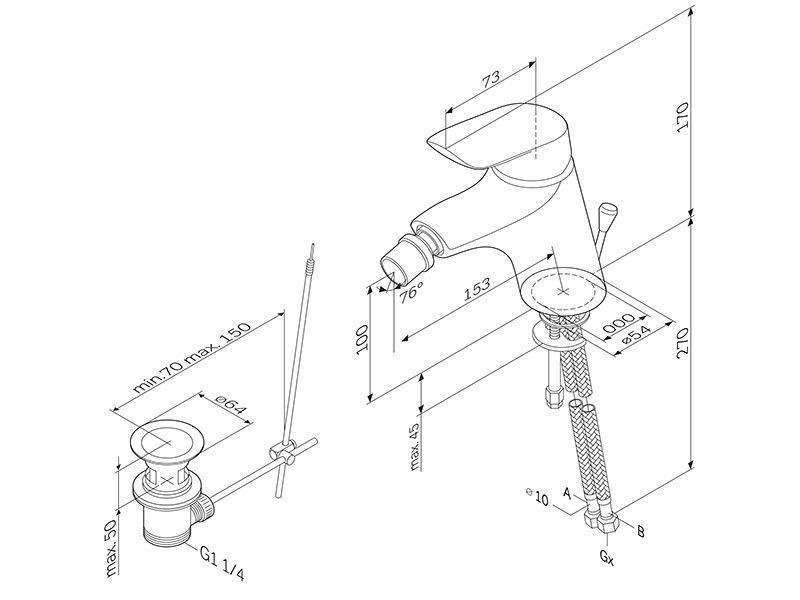 F5383164 Bliss L, смеситель для биде с донным клапаном, излив 153 мм, хром Излив: 153 мм Установка на одно отверстие Рычажный донный клапан 1 1/4“ с переливом AM.PM Soft Motion 35 мм керамический картридж Аэратор с шарнирным соединением Гибкая подводка G 3/8“