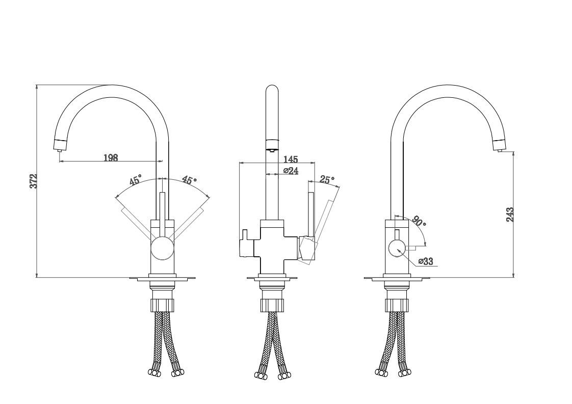 Гибкая подводка 40 см из нержавеющей стали гайки G1/2", усиленный комплект крепления, выход для подключения системы фильтрации воды.