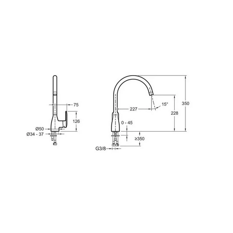 ВЫСОТА ПОД ИЗЛИВОМ: 350 мм