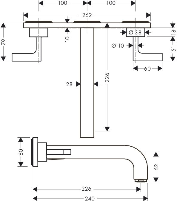 выступ 226 мм обычная струя расход воды: 5 л/мин с керамическими вентилями для горячей/холодной воды 90° нерегулируемое ограничение температуры незапираемый клапан фильтра подходит для проточных водонагревателей