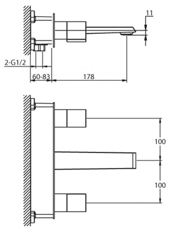 Смеситель для раковины на три отверстия, без донного клапана