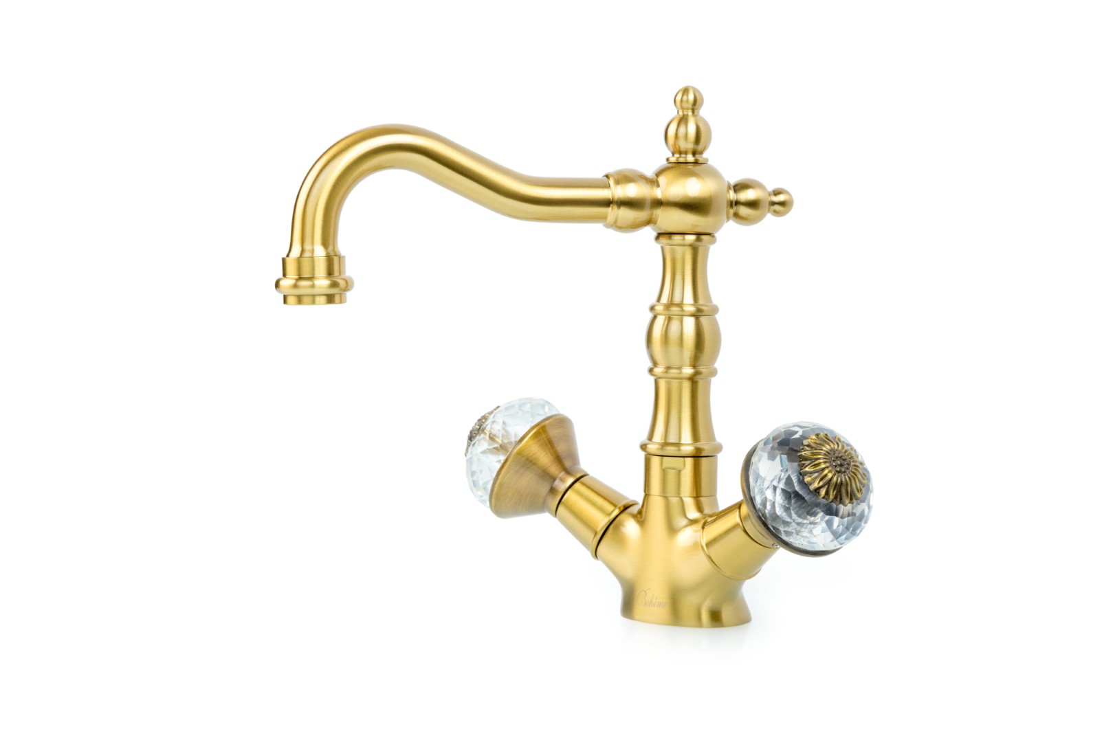 Хрустальное ограненное стекло увенчано отлитым вручную цветком.