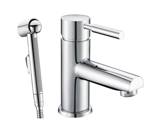 Смеситель Main 4108 для умывальника с гигиенической лейкой, хром Керамический двухступенчатый эко-картридж 35мм, Sedal (Испания), Встроенный силиконовый аэратор Neoperl CASCADE (Германия) для равномерного распределения струи Гибкая подводка G1/2, Sedal (Испания), Гибкая подводка на шланг со встроенным обратным клапаном, Sedal (Испания), Гигиеническая лейка с системой защиты от известковых отложений, Фиксированное настенное крепление для душа, Набор для монтажа