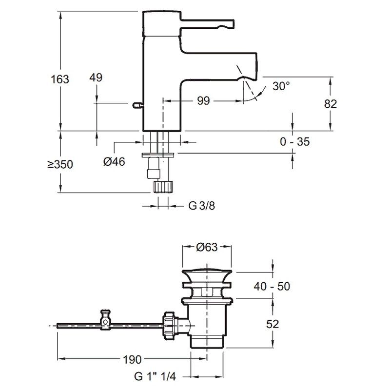 ВЫСОТА ПОД ИЗЛИВОМ: 163 мм