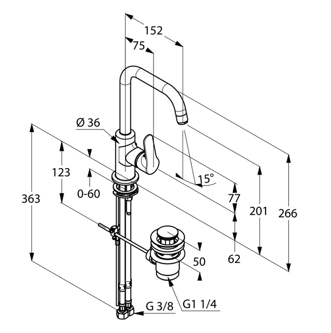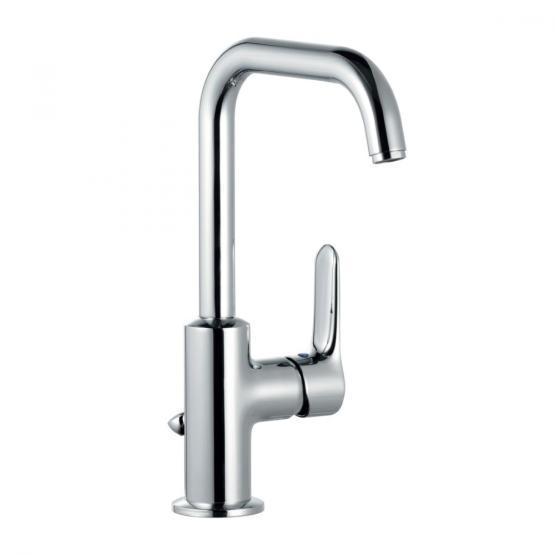Основные характеристики: - Смеситель для раковины - Способ монтажа: горизонтальный - Излив: поворотный - Количество монтажных отверстий: 1 - Керамический картридж - Аэратор - Гибкая подводка G 3/8 - Донный клапан G 1 ¼ - Материал: латунь - Цвет: хром