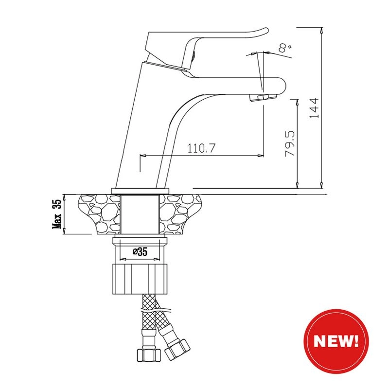 Гибкая подводка OLIVE’S увеличенной длины 50 см позволяет избежать затруднений при монтаже смесителей.