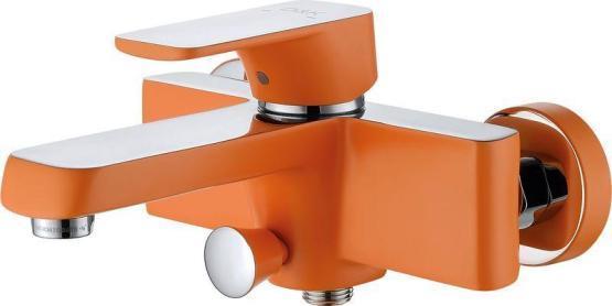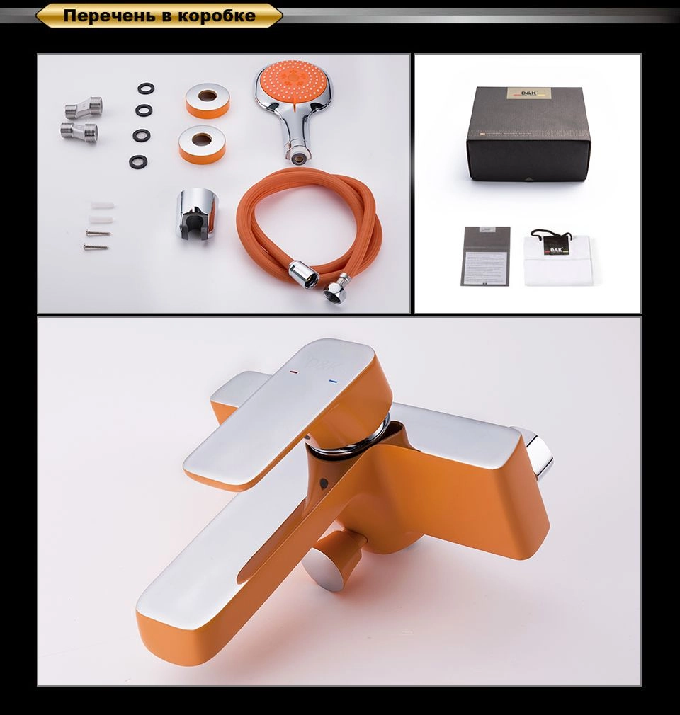 Смеситель D&K DA1433213 для ванны оранжевый хром набор: смеситель и душевой гарнитур, для ванны с душем,керамический картридж,душевой шланг, душевая лейка, настенный держатель, эксцентрики, аэратор, дивертор