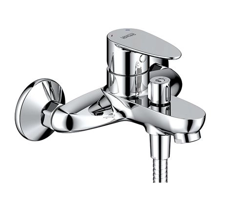 Смеситель Leine 3501 для ванны с коротким изливом, хром Керамический картридж 35мм, Sedal (Испания), Встроенный пластиковый аэратор Neoperl CASCADE (Германия) для равномерного распределения струи, Автоматический кнопочный переключатель на душ Лейка 3-функциональная с системой защиты от известковых отложений, Фиксированное настенное крепление для душа
