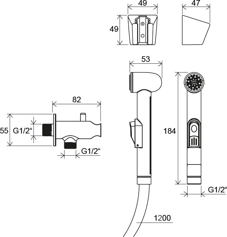 • исполнение: с ручным гигиеническим душем; вентиль выступает в качестве держателя гигиенического душа
