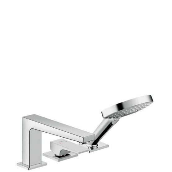 состоит из: смеситель для ванны на 3 отверстия, для монтжа на краю ванны, ручной душ, шланг для душа, держатель для душа