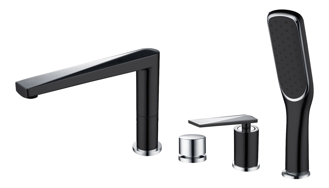 Смеситель врезной на борт ванны Boheme VENTURO черный + хром 370-B