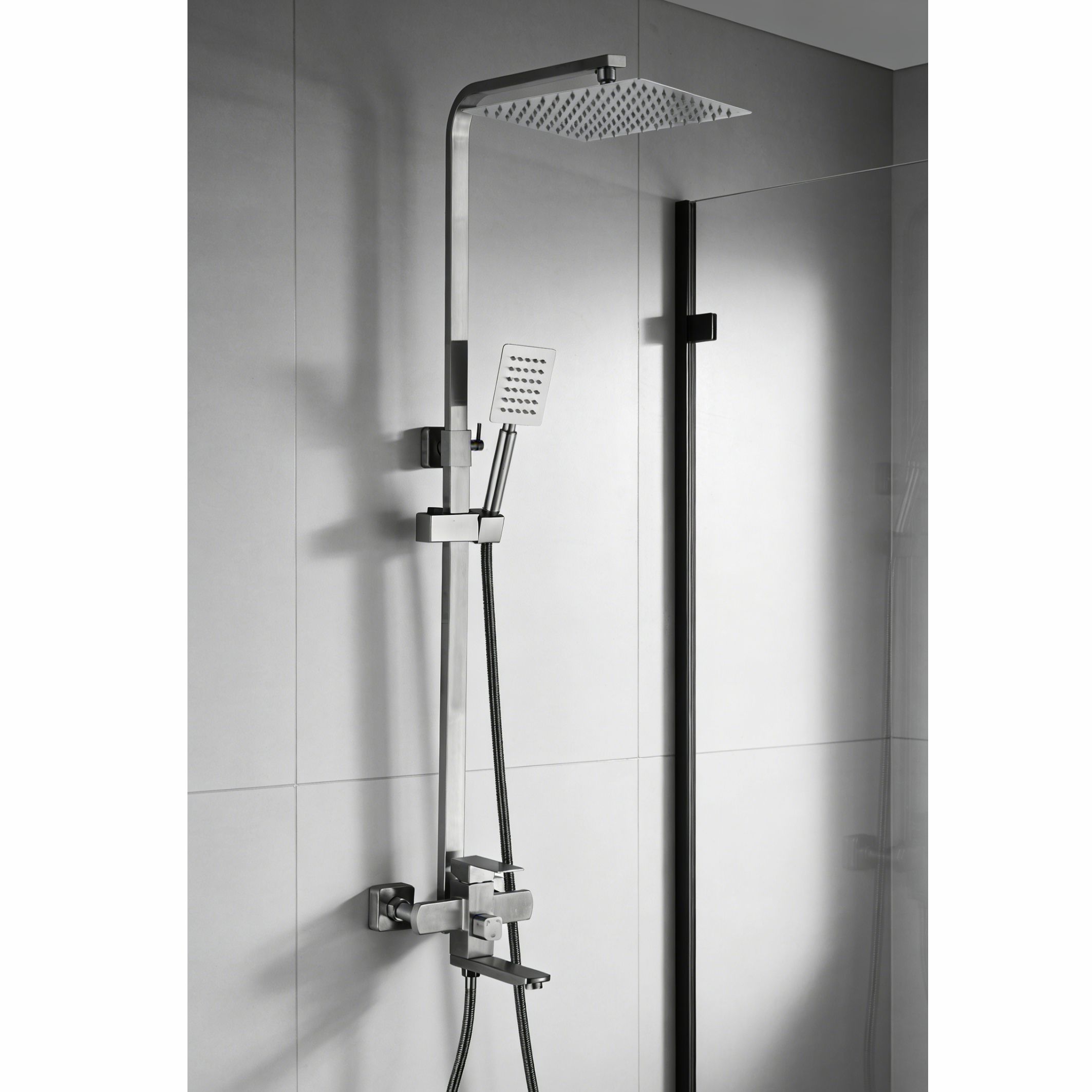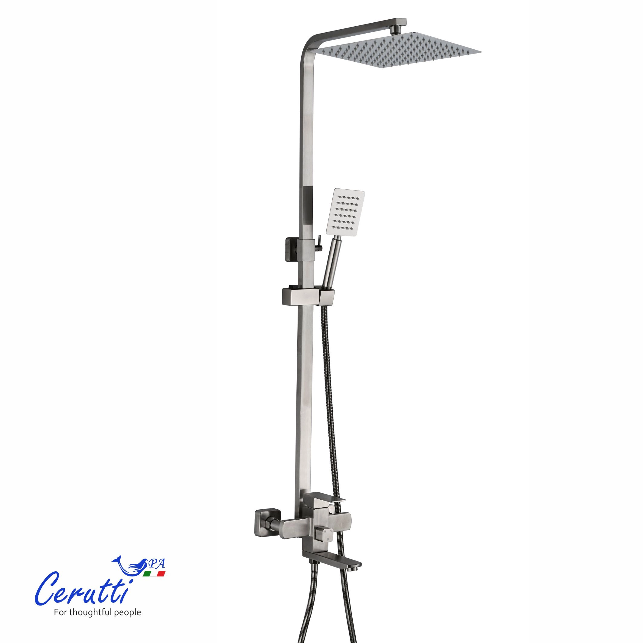 RUFINO BN система душевая из стали, прямоугольная, цвет МАТОВЫЙ НИКЕЛЬ, Ceruttispa