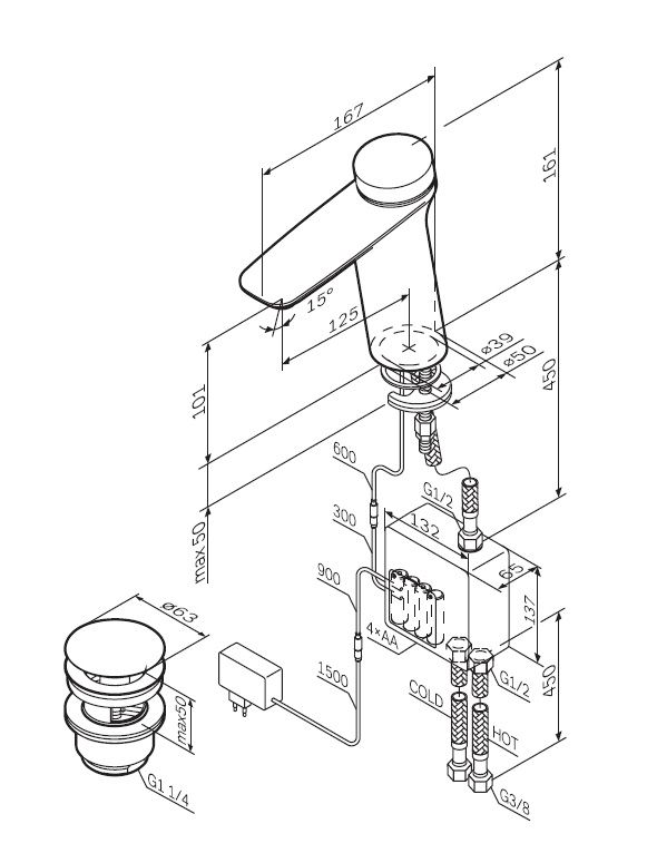 Идеальная геометрия, разработанная по стандарту SA (Smart Angle) – математические выверенное соотношение высоты смесителя, длины излива и наклона корпуса для удобного использования на умывальнике любого размера.