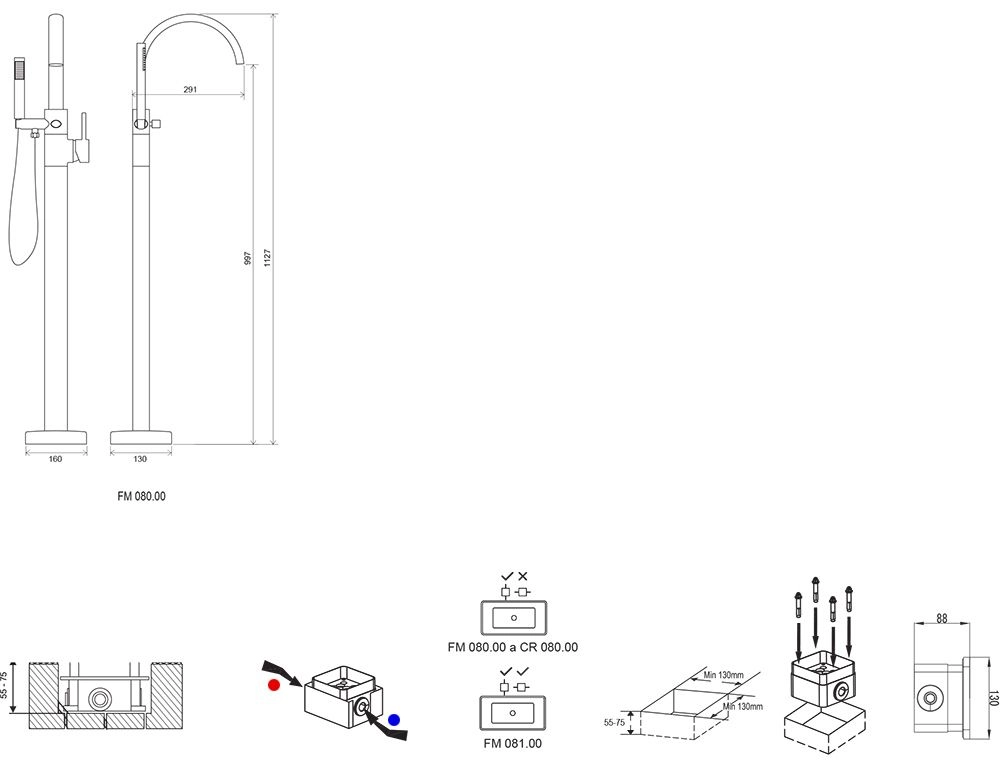 • исполнение: поставляется вместе с R-box - крепежным модулем к трубопроводу в полу
