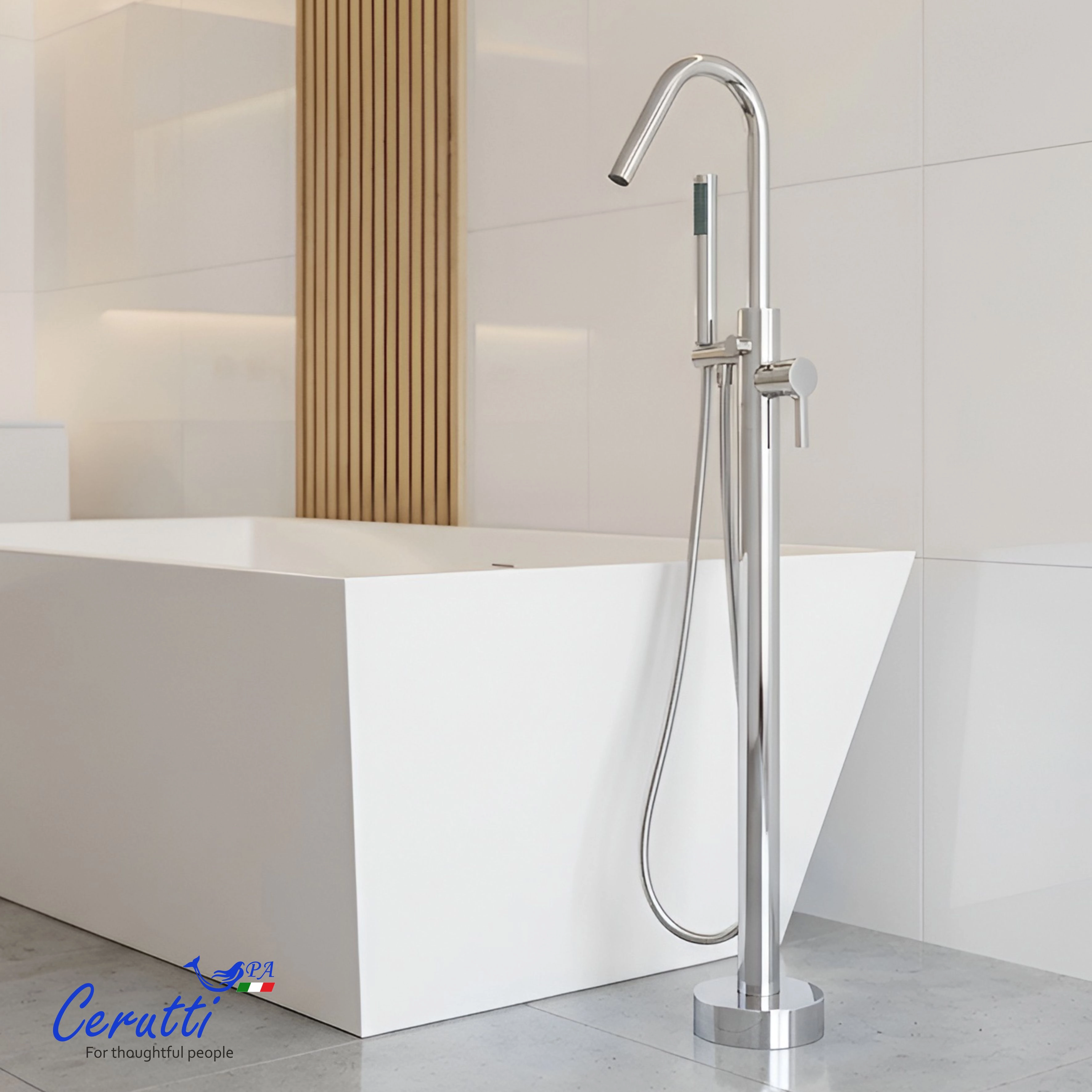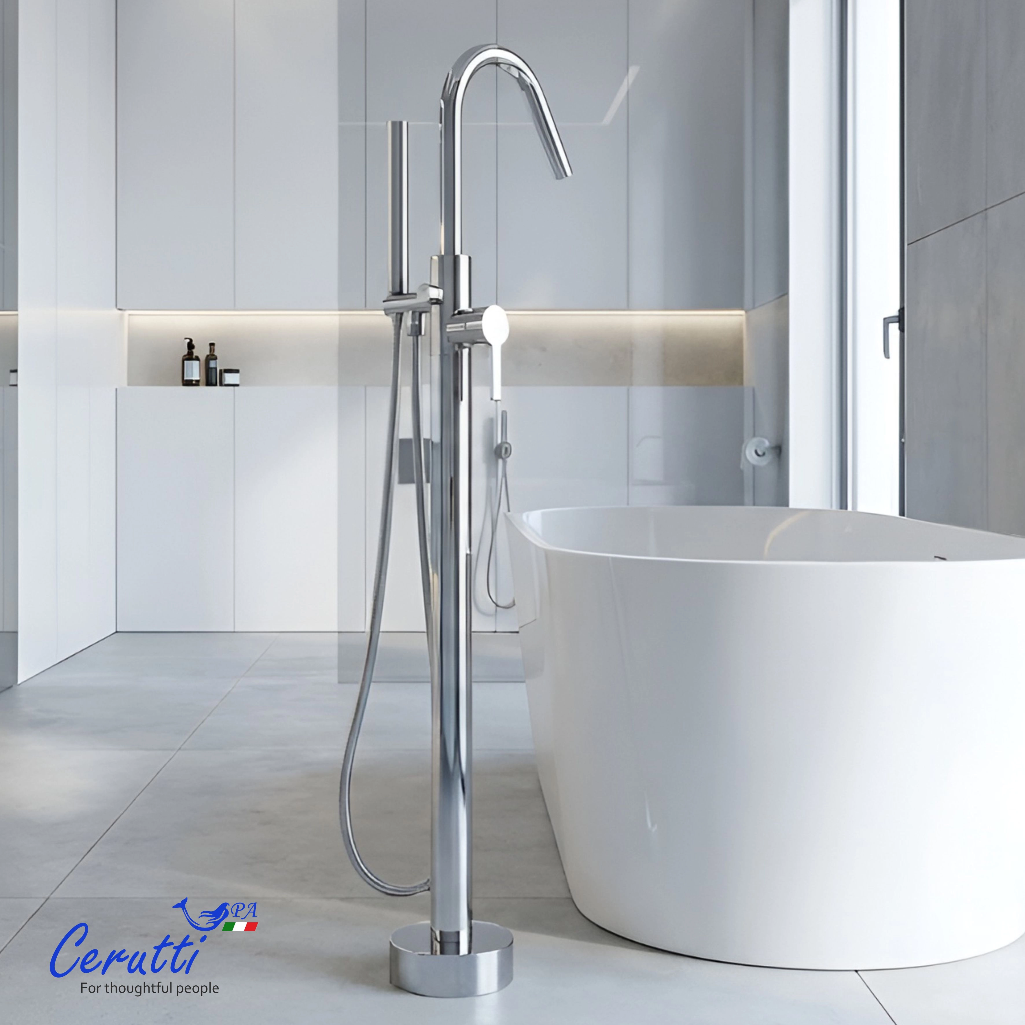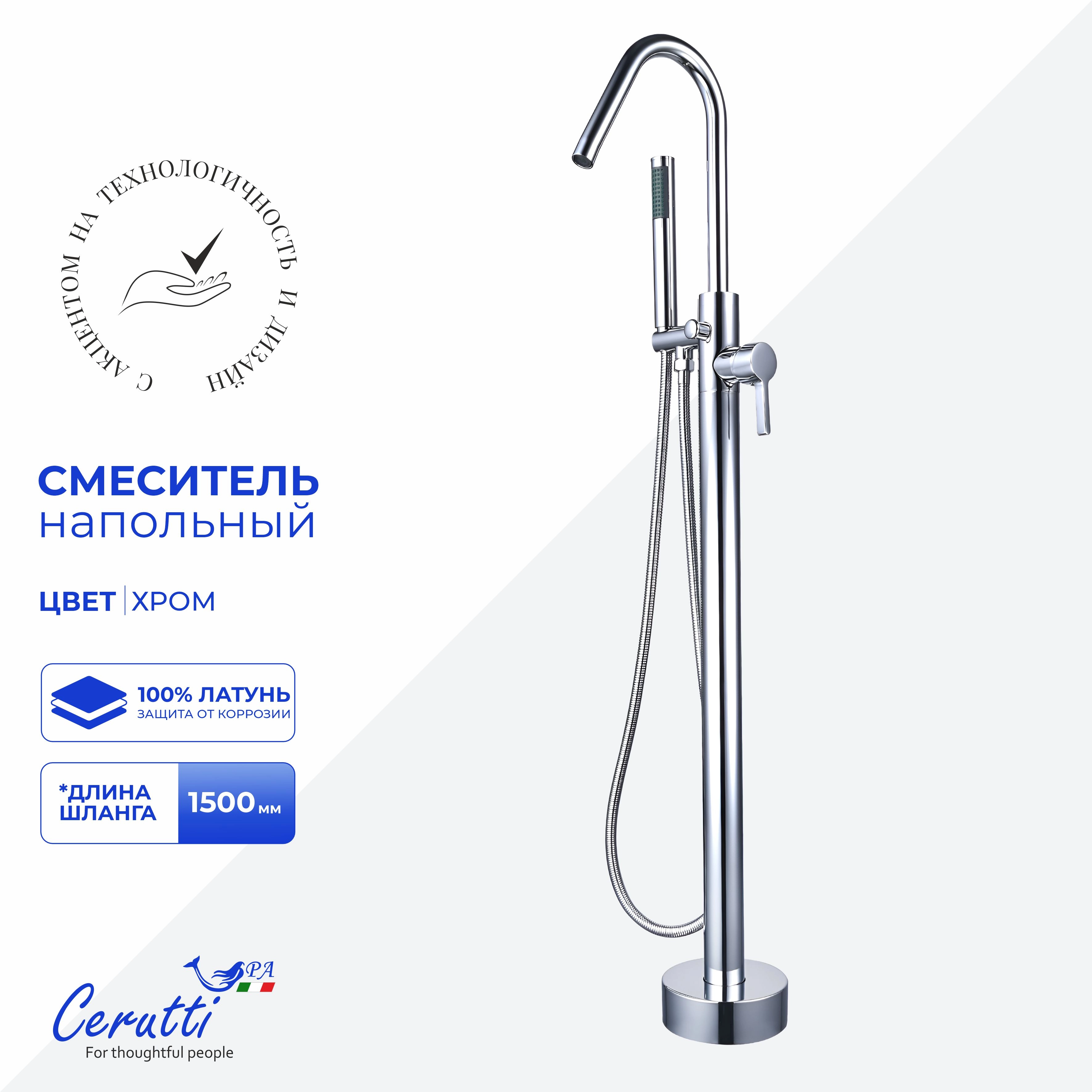 ELLA (CK-Y135chrome) Смеситель напольный для ванны из латуни, цвет ХРОМ, с ручным душем, Ceruttispa