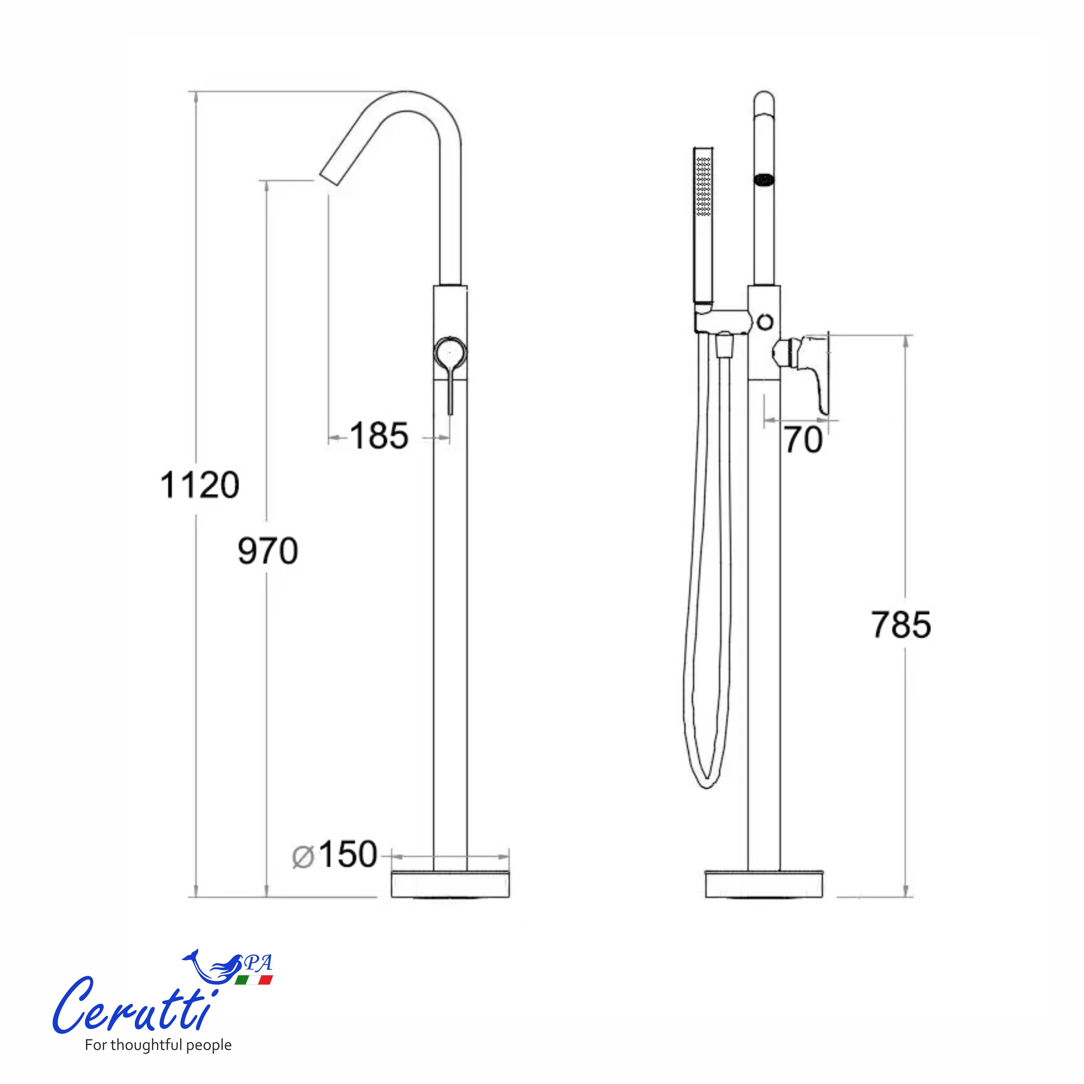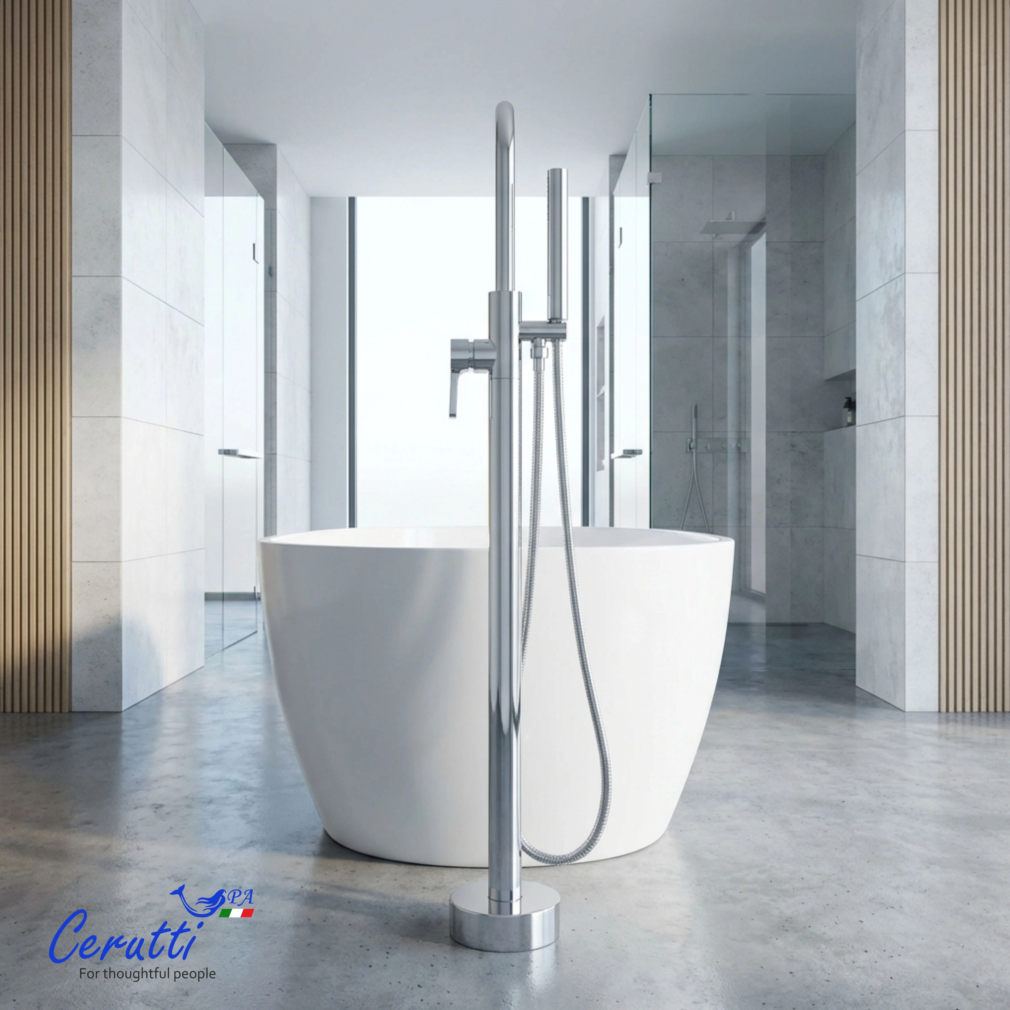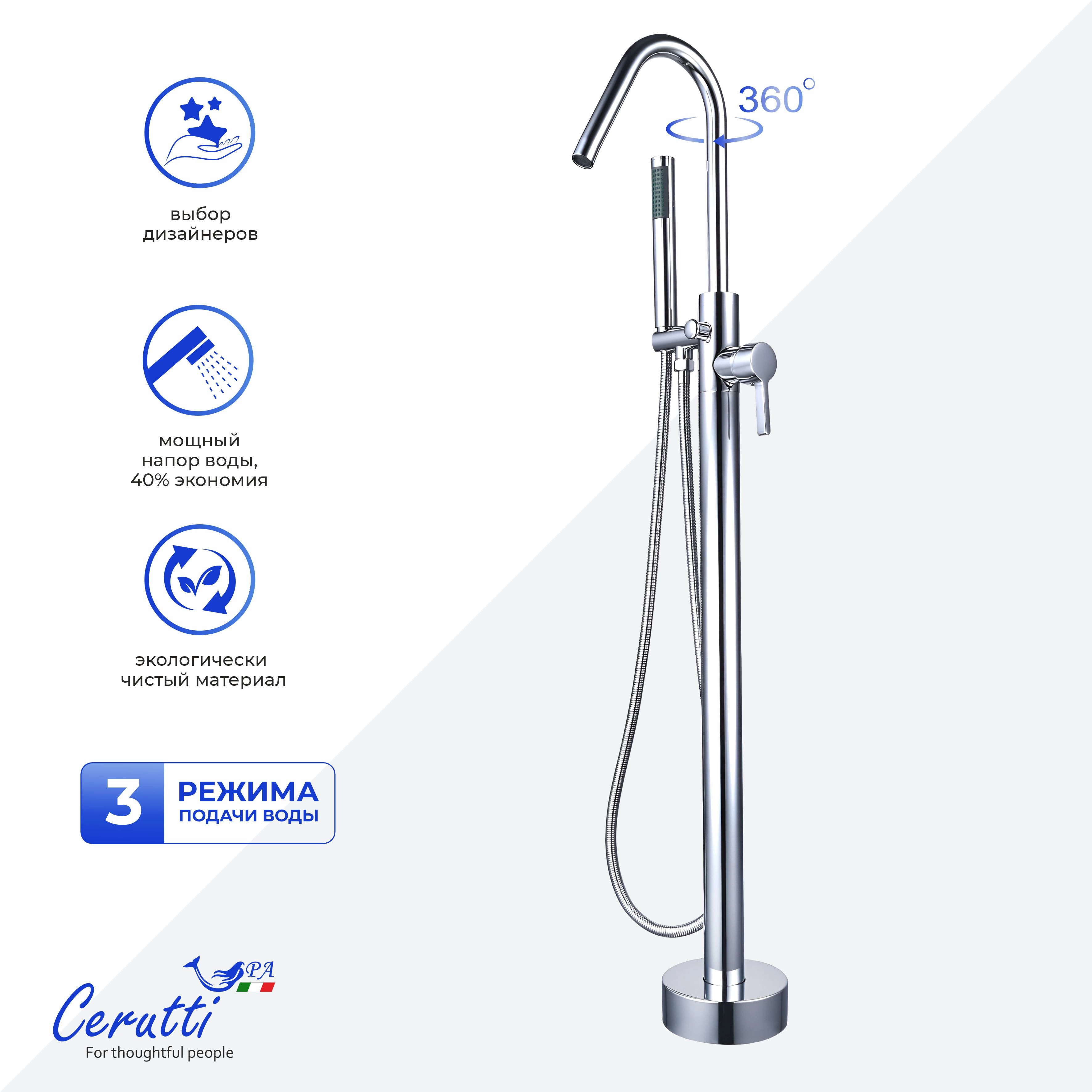 ELLA (CK-Y135chrome) Смеситель напольный для ванны из латуни, цвет ХРОМ, с ручным душем, Ceruttispa