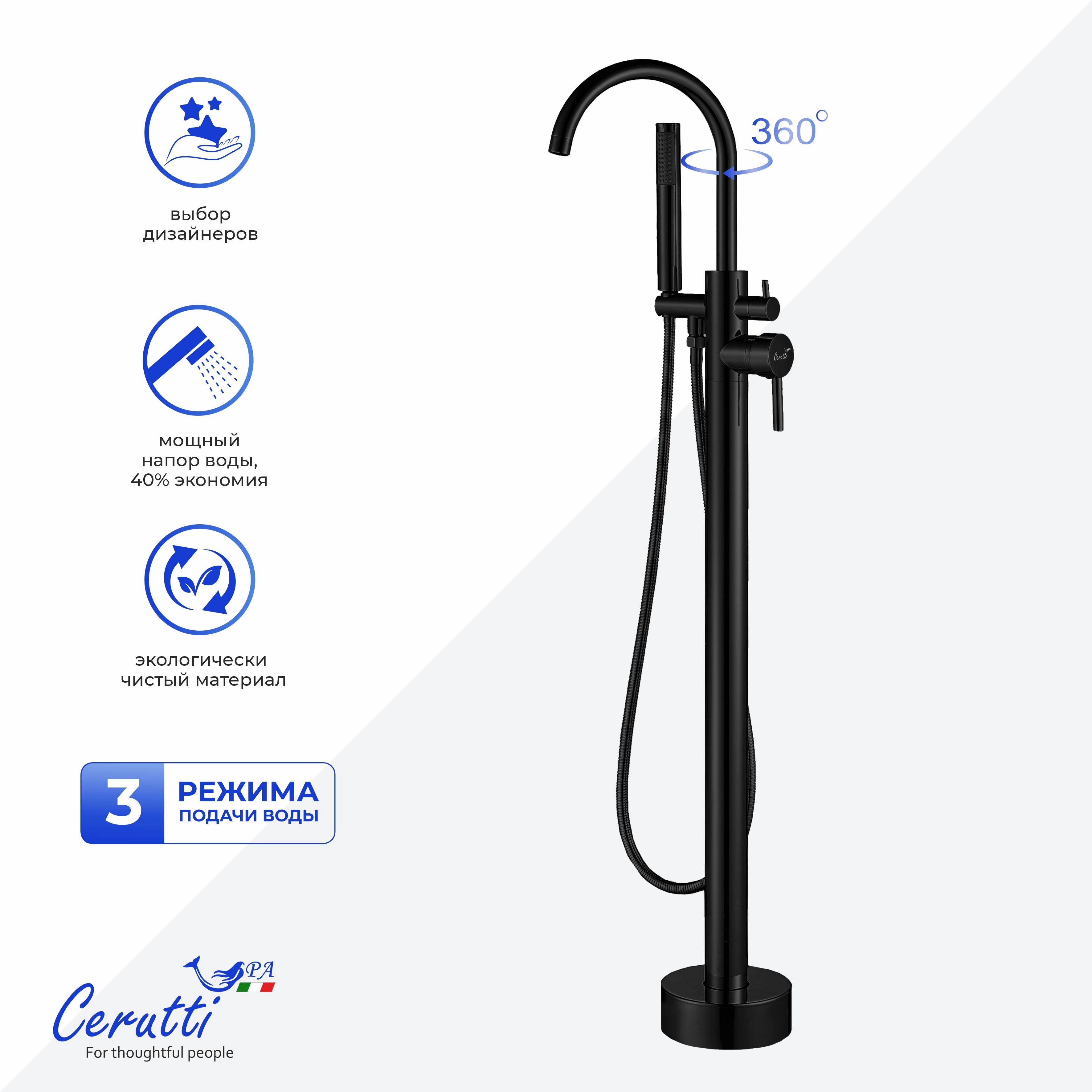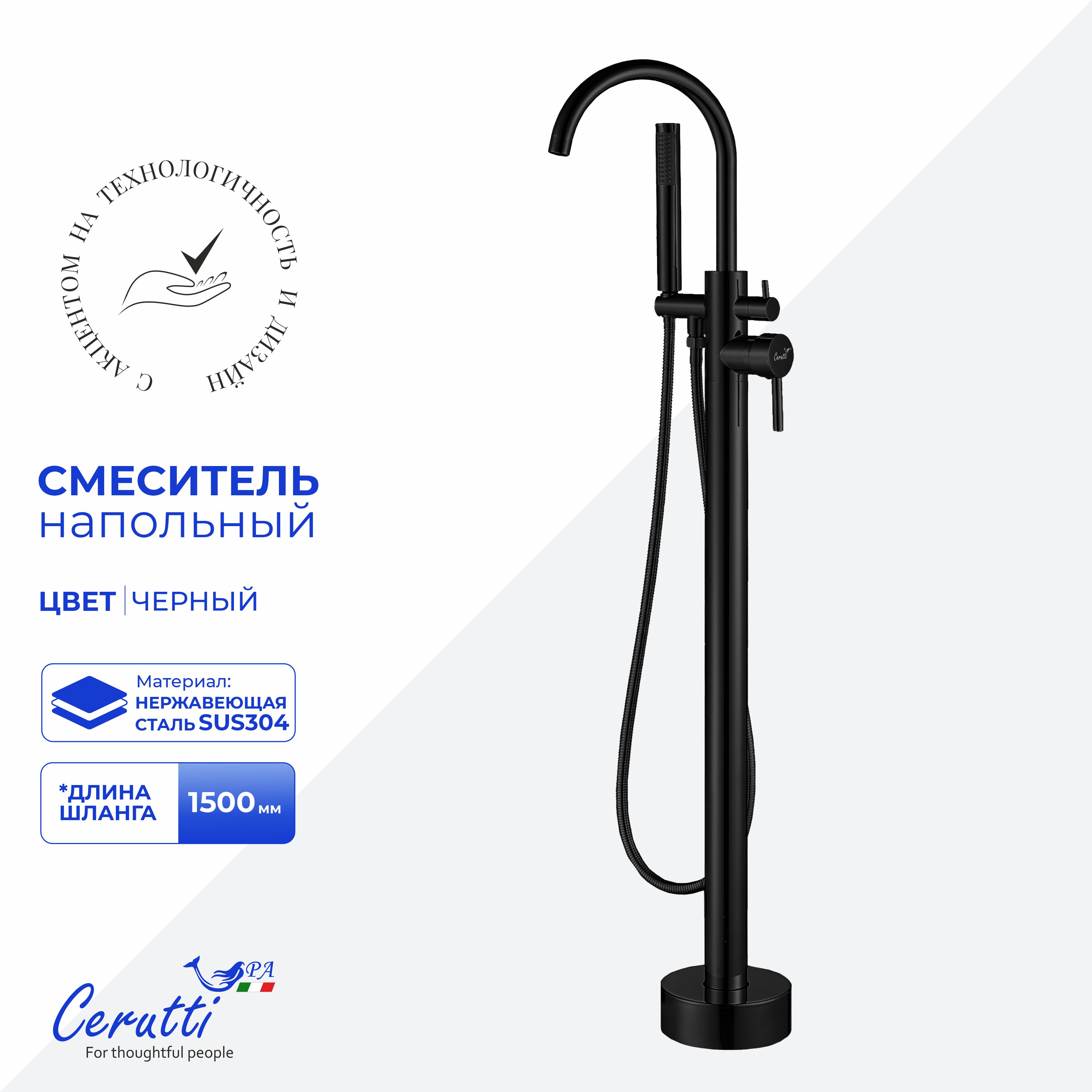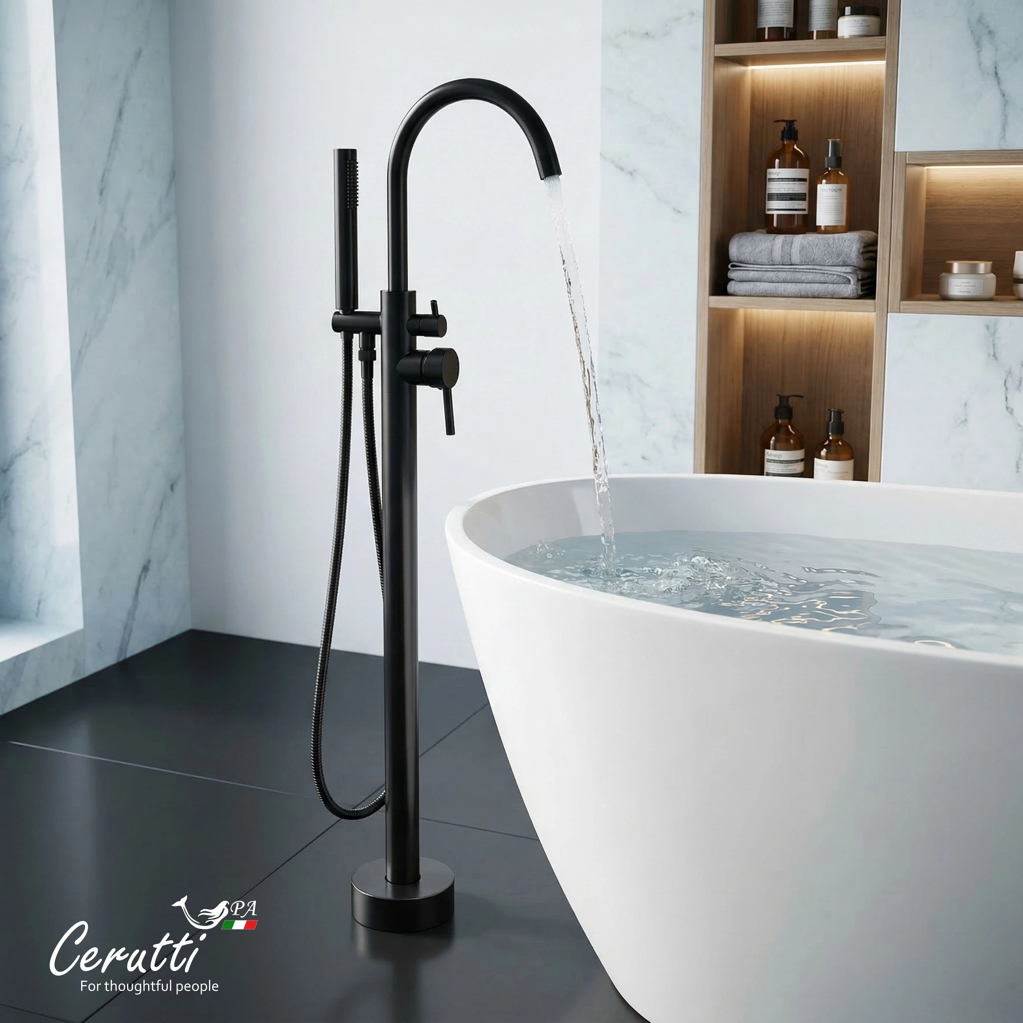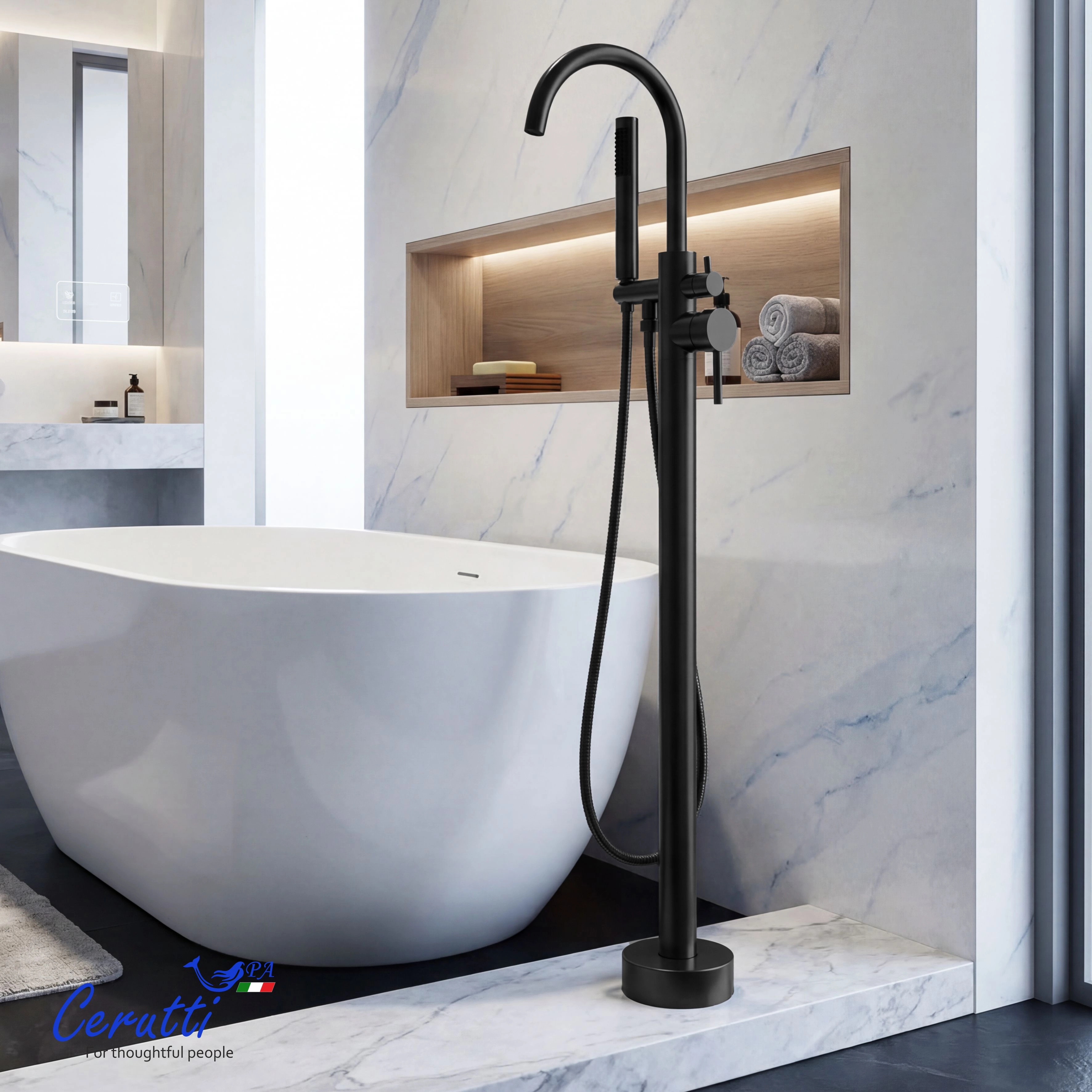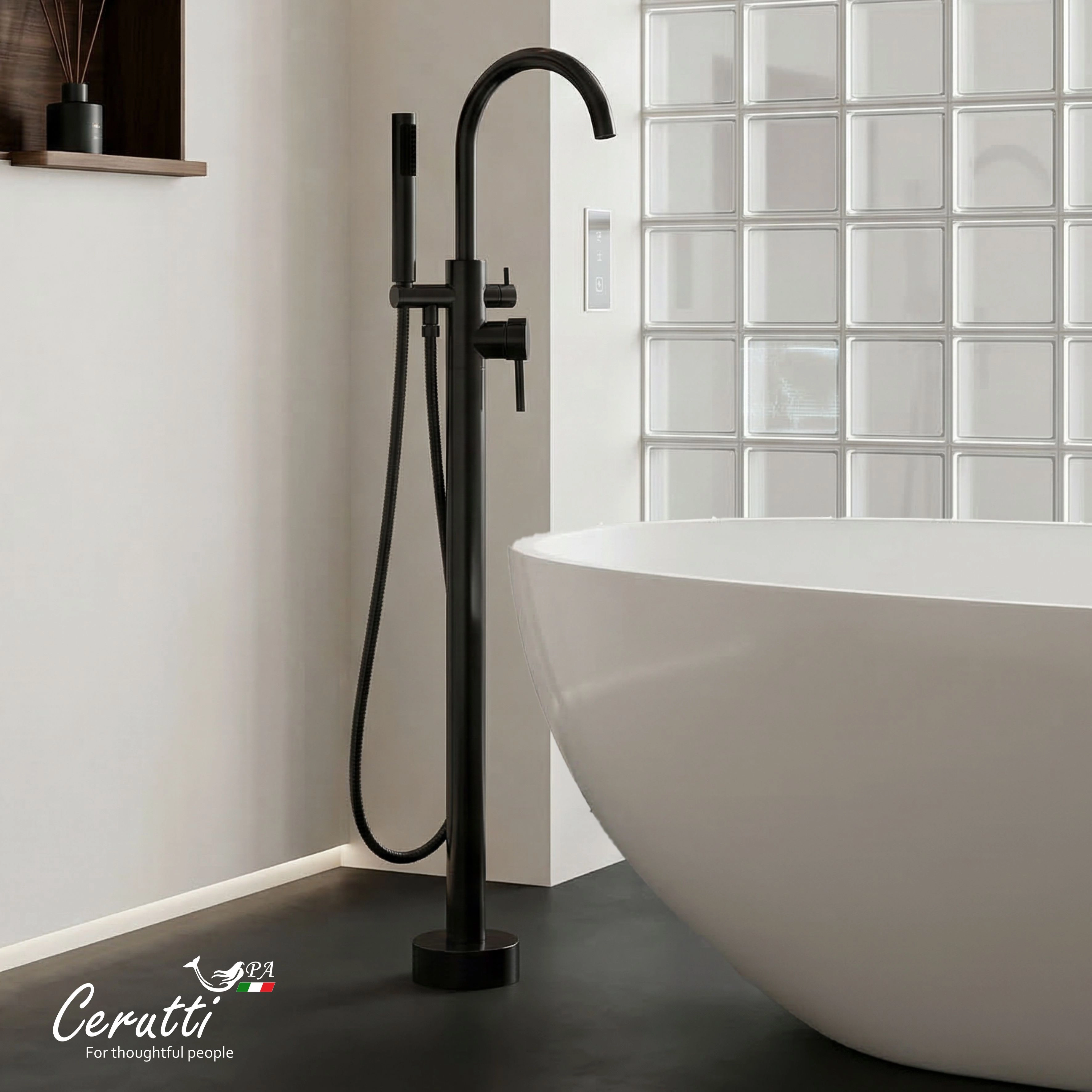 TOBIA B смеситель напольный для ванны из стали, цвет ЧЕРНЫЙ МАТОВЫЙ, с ручным душем Ceruttispa