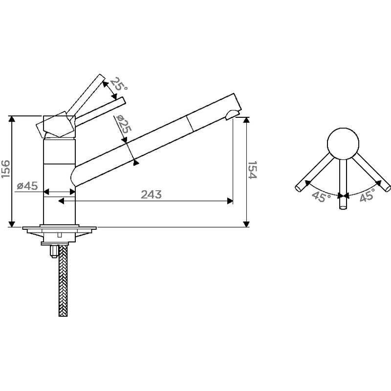 Соединительные шланги: гибкие, в оплетке из нержавеющей стали;