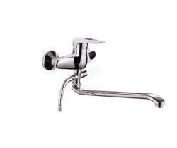 Смеситель универсальный с прямым плоским изливом 400мм, с аксессуарами. Картридж керамический 40 мм. Хром.