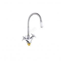Смеситель для кухни с высоким изливом. Хром-белый.