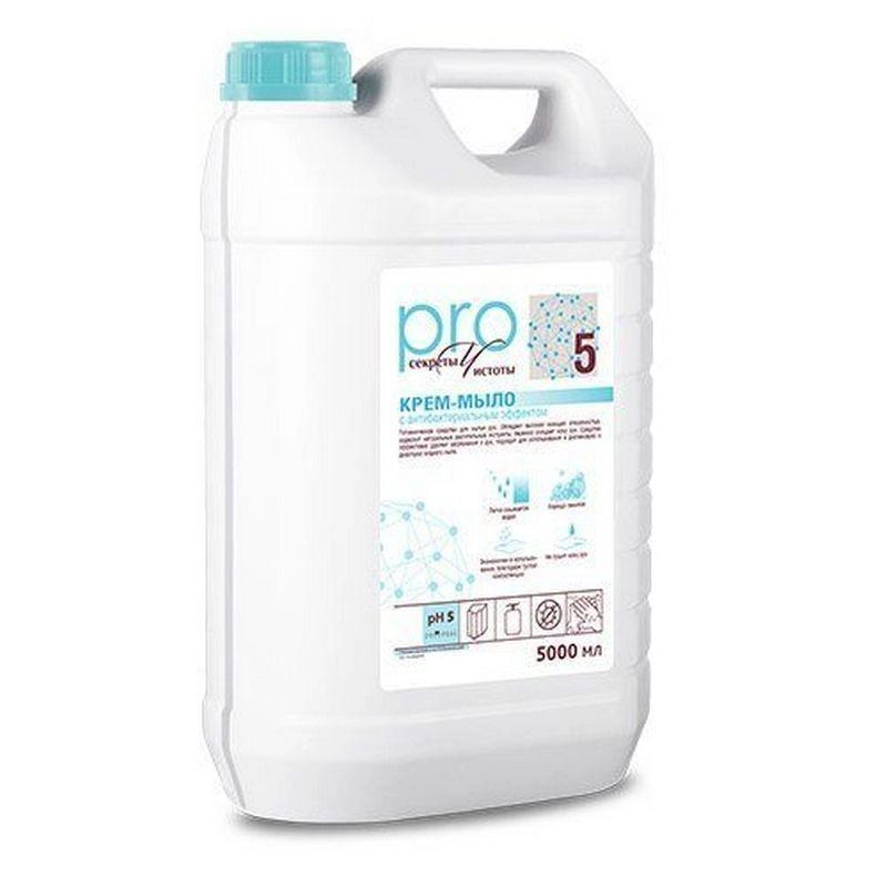 Объем: 5 л. Тара: Канистра Специально разработанная формула крем-мыла с триклозаном, создаёт антибактериальную защиту и бережно очищает кожу от загрязнений.