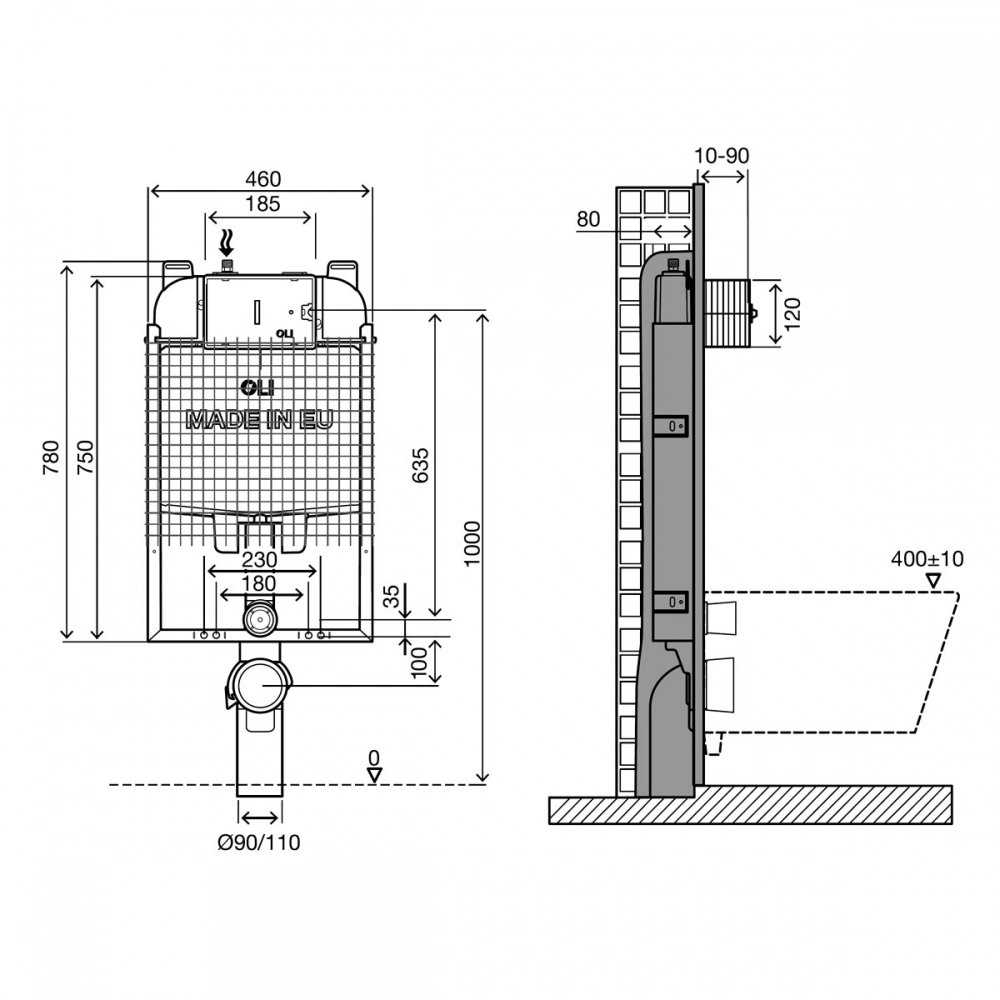 - Совместима со всеми видами подвесных унитазов