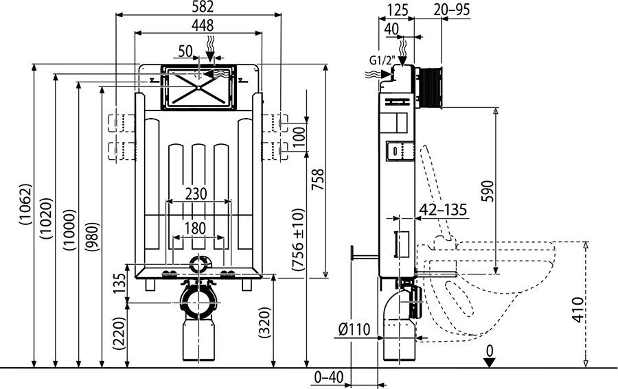 Установочный модуль для подвесного унитаза с шагом соединения 180 или 230 мм предназначен для настенного монтажа. Он также подходит для реконструкции ванных комнат. Прочная конструкция монтажного модуля обеспечивает большую несущую способность и обладает повышенной стойкостью к коррозии. В состав изделия входит тепло- звукоизоляционная плита для бачка, объем которого 9 л. Энергосберегающий регулируемый двойной смыв в диапазоне 2,5-3,5 л. Звук воды при сливе почти неслышим. Вы можете дополнить установочный модуль кнопкой управления.