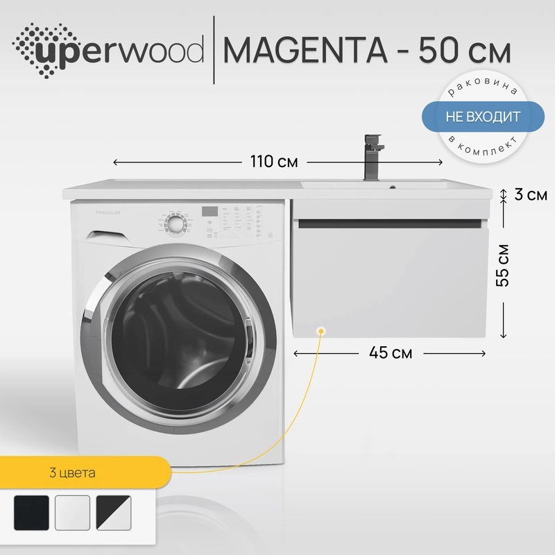 Тумба под стиральную машину Uperwood Magenta, 50 см, подвесная, белая/графит, выдвижной ящик