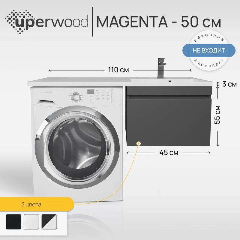 Тумба под стиральную машину Uperwood Magenta, 50 см, подвесная, черная, выдвижной ящик