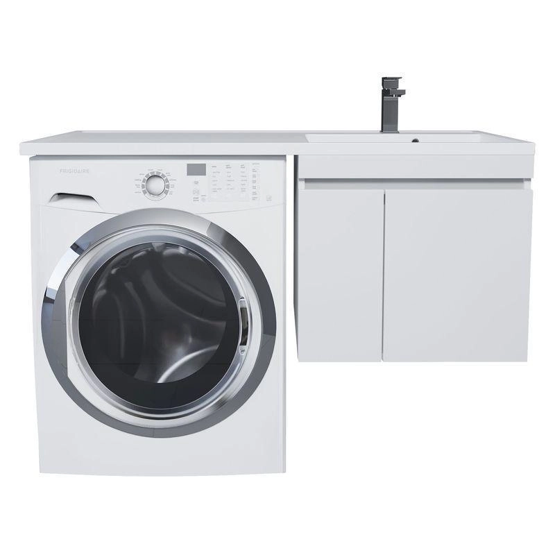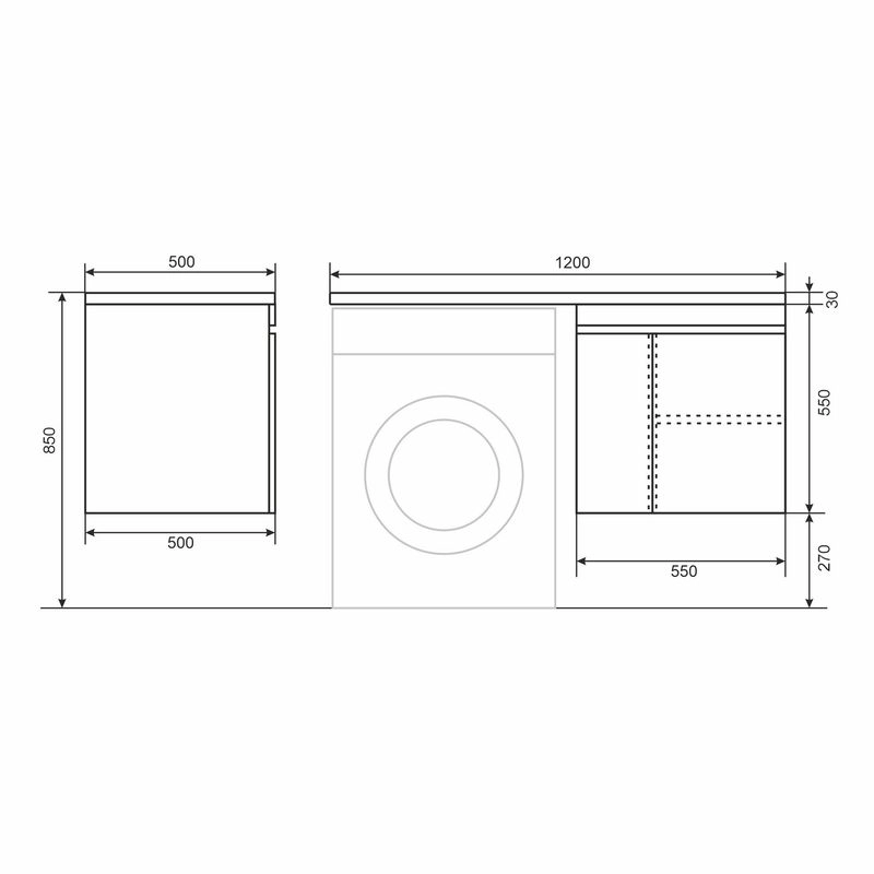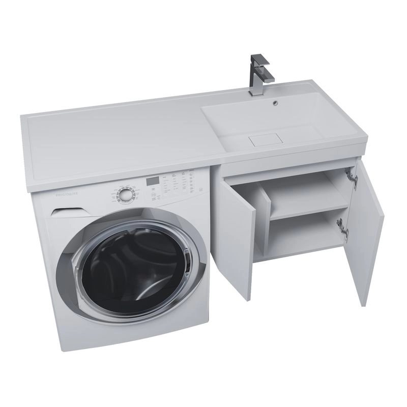 Тумба может быть установлена как с правой, так и с левой стороны относительно стиральной машины в зависимости от положения чаши раковины. "Крыло" раковины Uperwood Magenta располагается над стиральной машиной.