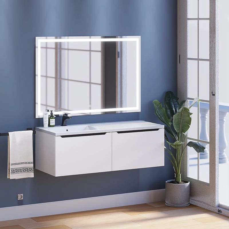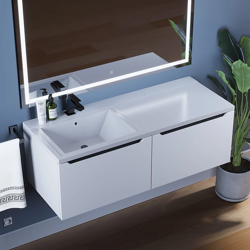Элегантный минималистичный дизайн тумбы дополняет ее безупречная матовая поверхность.
