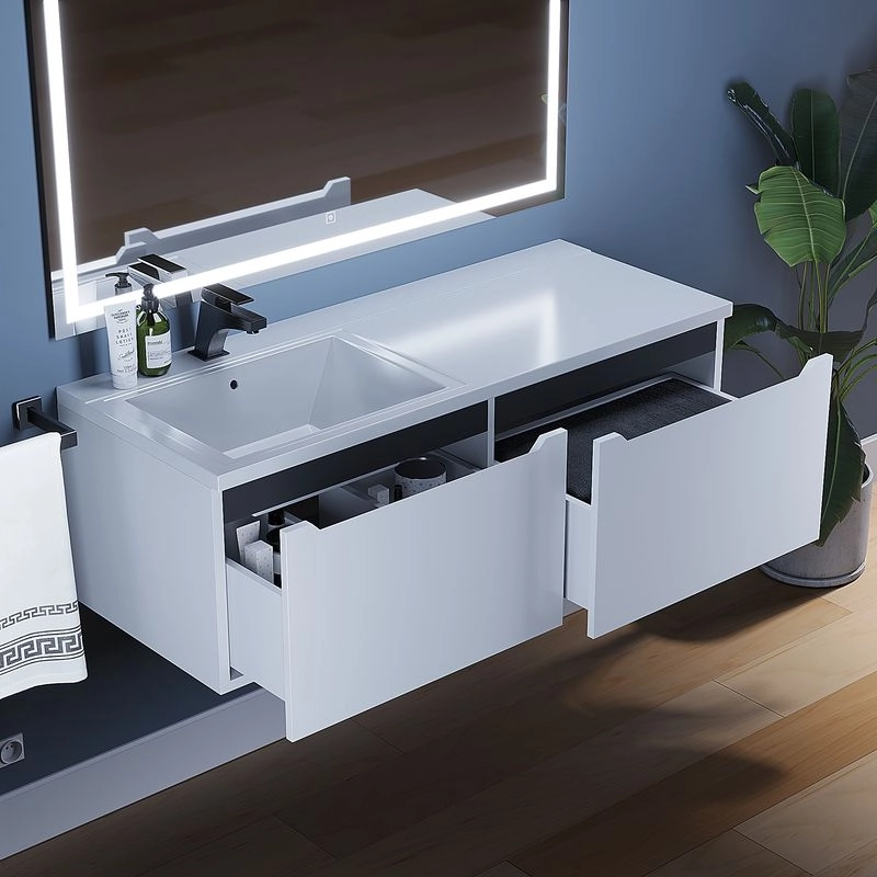 Тумба поставляется в собранном виде, в комплект входит крепеж для подвесного монтажа и кронштейн для раковины.