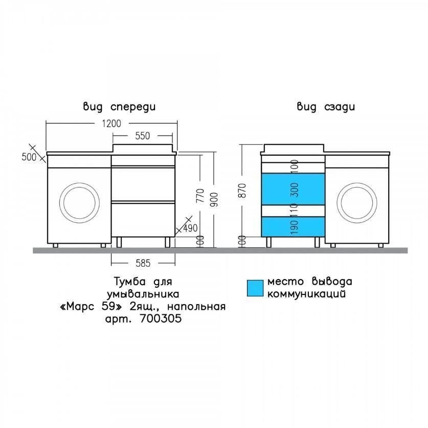 Тумба "Марс 59" 2 ящ, напольная (ум. Юпитер 1200*500 литой мрамор) Материал корпуса ЛДСП. Материал Фасада МДФ. Покрытие эмаль.