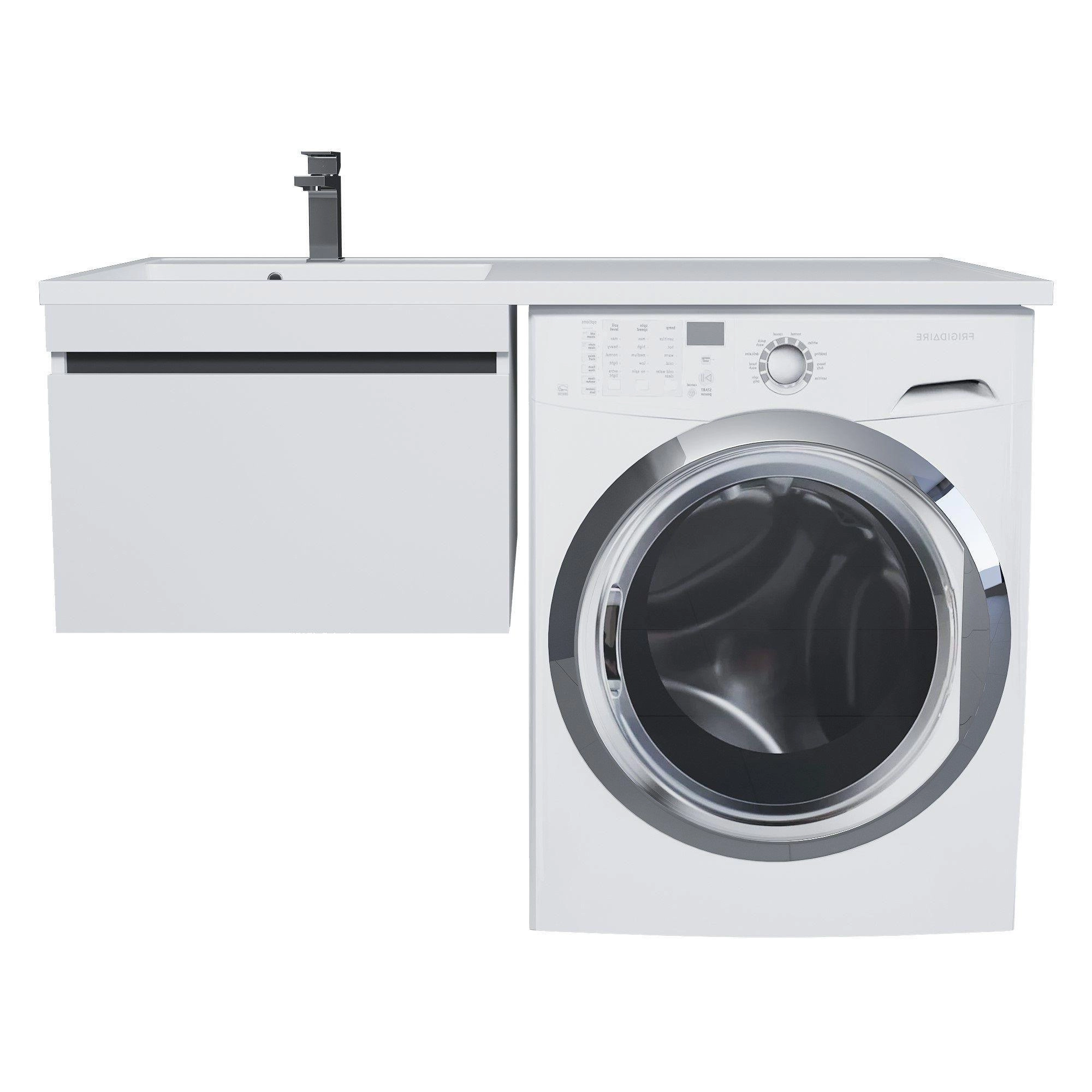 Тумба с раковиной под стиральную машину Uperwood Magenta 120 см, подвесная, белый матовый/графит, выдвижной ящик, левая