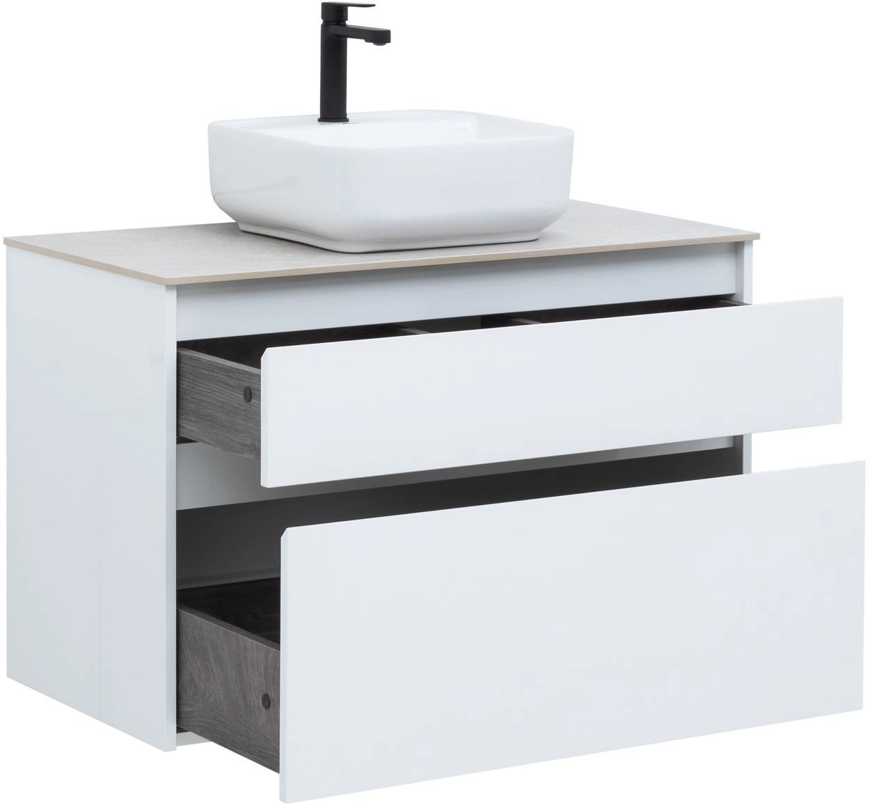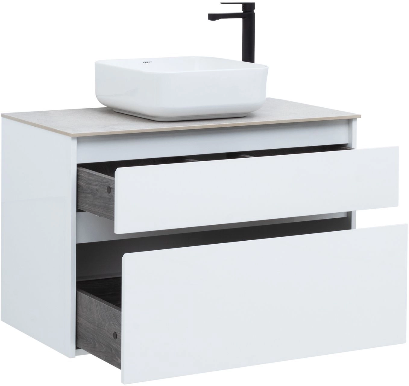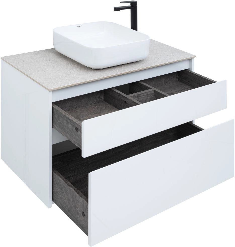 Тумба под раковину Aquanet Nova Lite 90 белоснежного цвета из влагостойкой ламинированной древесно-стружечной плиты выглядит нарядно. Подвесной монтаж придает визуальную легкость тумбе шириной 90 см. Она оборудована двумя выдвижными ящиками. Ящики довольно вместительные и позволяют разместить все необходимое. Комплектуются направляющими немецкого производства Hettich Quadro, оснащенными доводчиками. Фасады выполнены с декоративной интегрированной ручкой, не имеющей острых краев и внутренних углов, что обеспечивает удобство эксплуатации и легкий уход за мебелью.