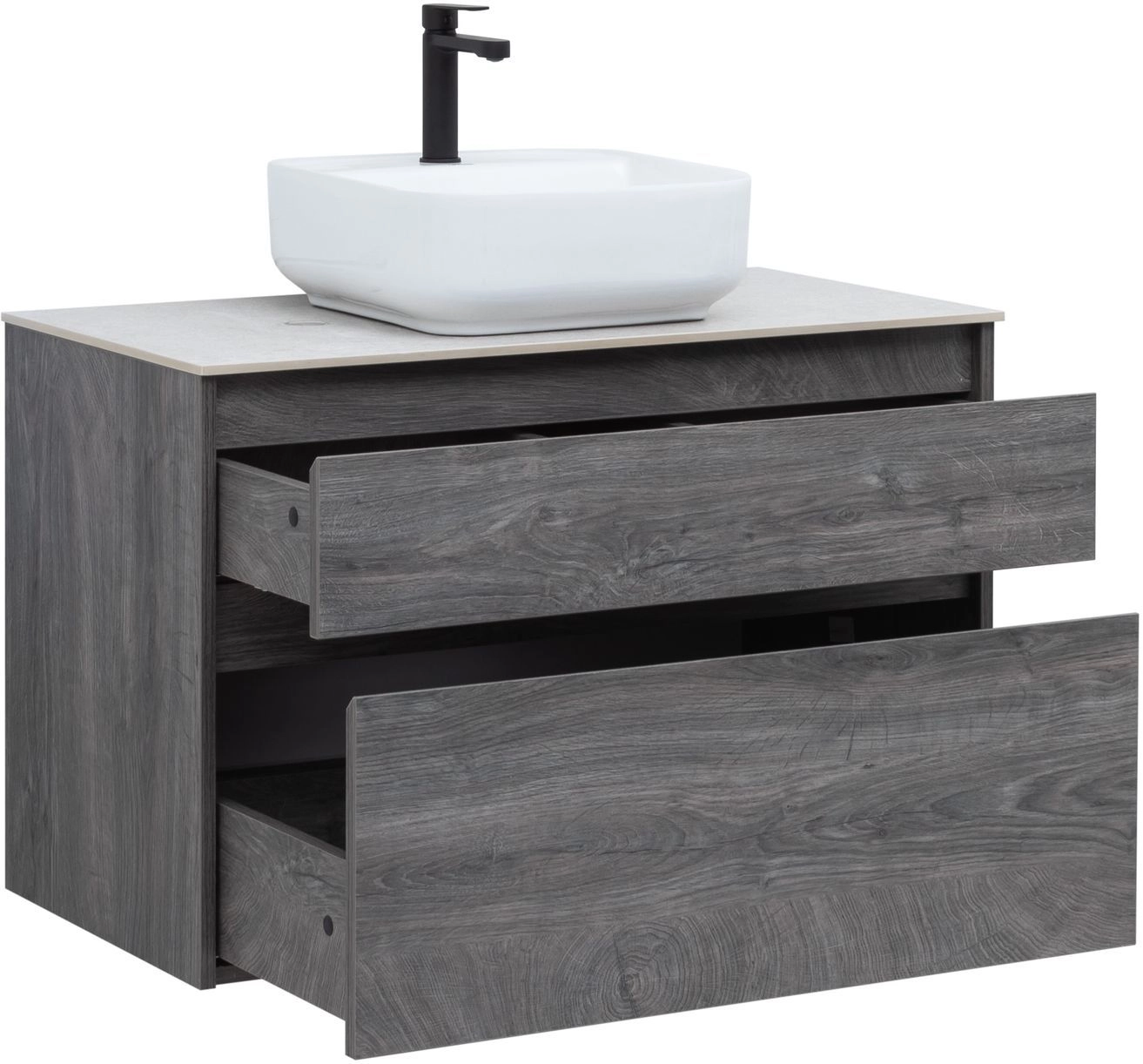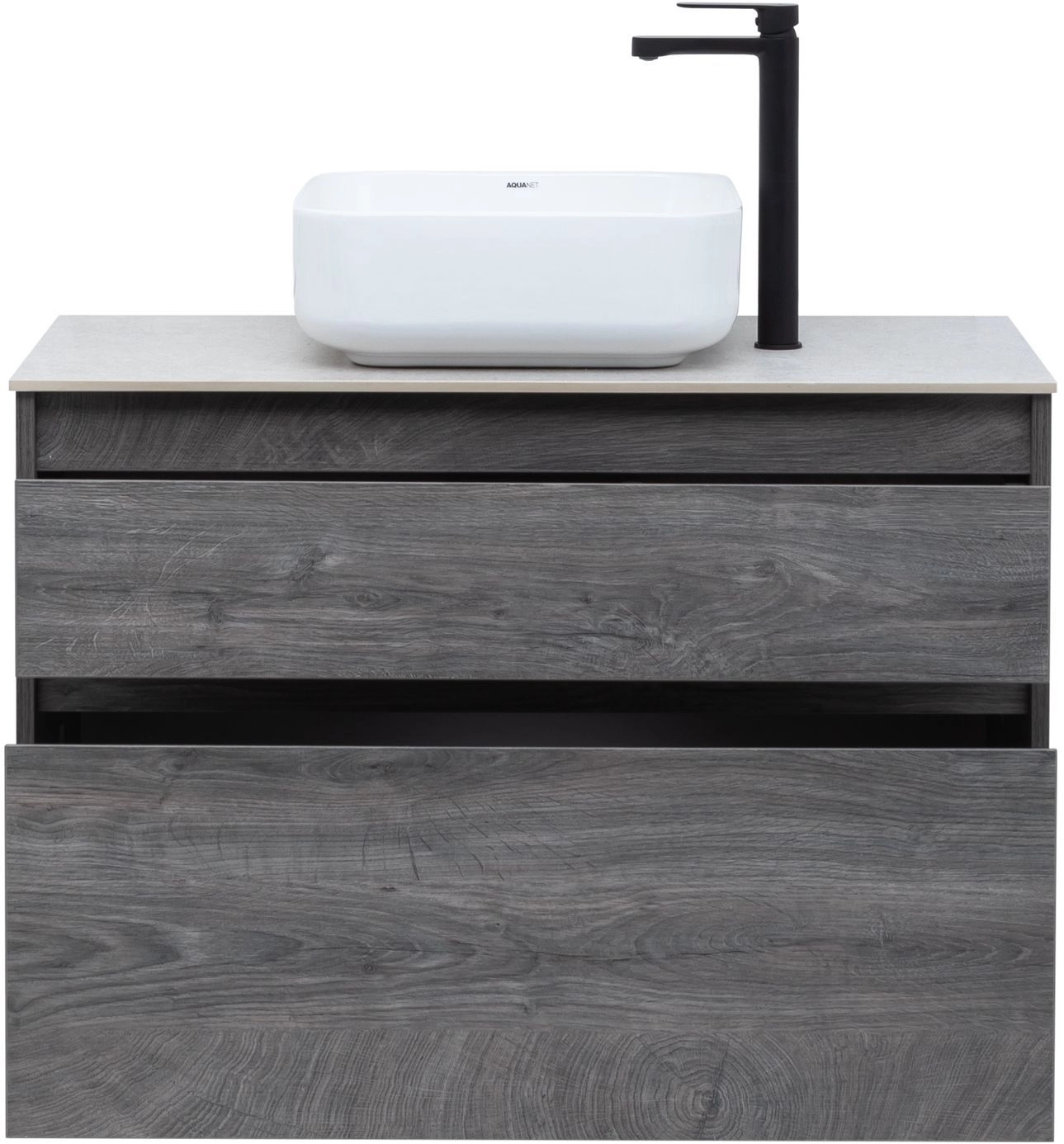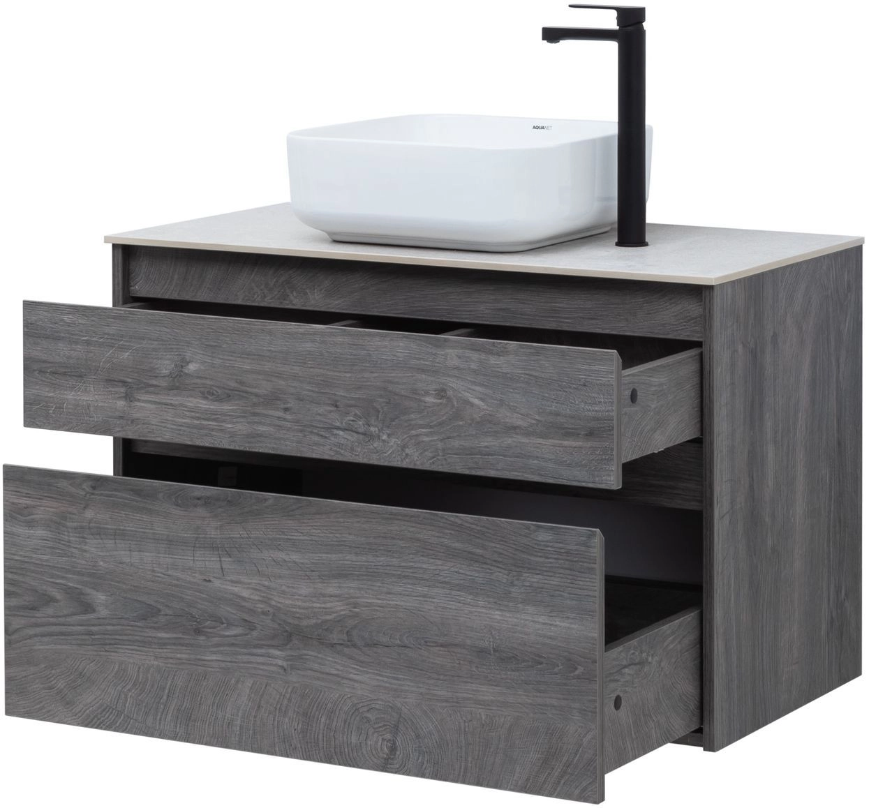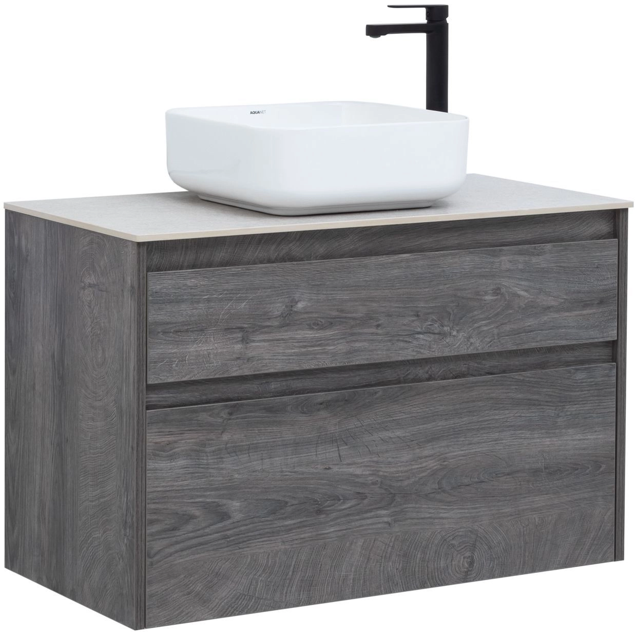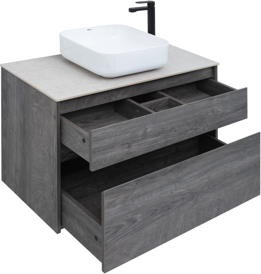 Тумба под раковину Aquanet Nova Lite 90 из влагостойкой ламинированной древесно-стружечной плиты в благородном цвете «дуб рошелье» имеет достойный вид. Фактура натурального дерева выглядит изысканно, а подвесной монтаж придает визуальную легкость тумбе шириной 90 см. Она оборудована двумя выдвижными ящиками. Ящики довольно вместительные и позволяют разместить все необходимое. Фасады выполнены с декоративной интегрированной ручкой, не имеющей острых краев и внутренних углов, что обеспечивает удобство в эксплуатации и легкий уход за мебелью. Ящики комплектуются направляющими немецкого производства Hettich Quadro, оснащенными доводчиками.