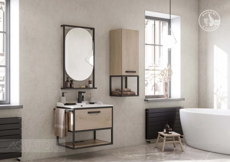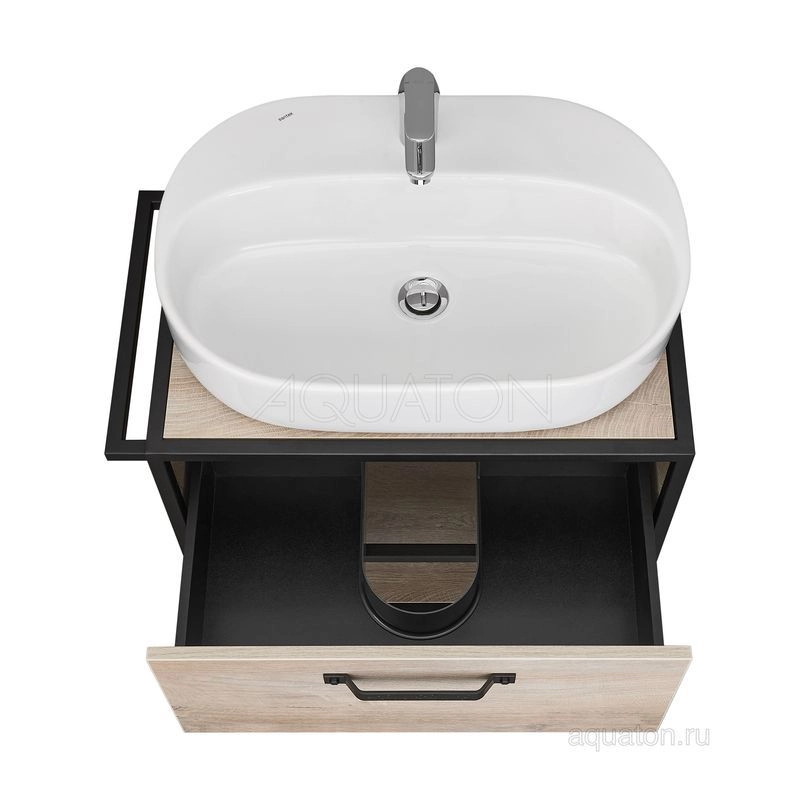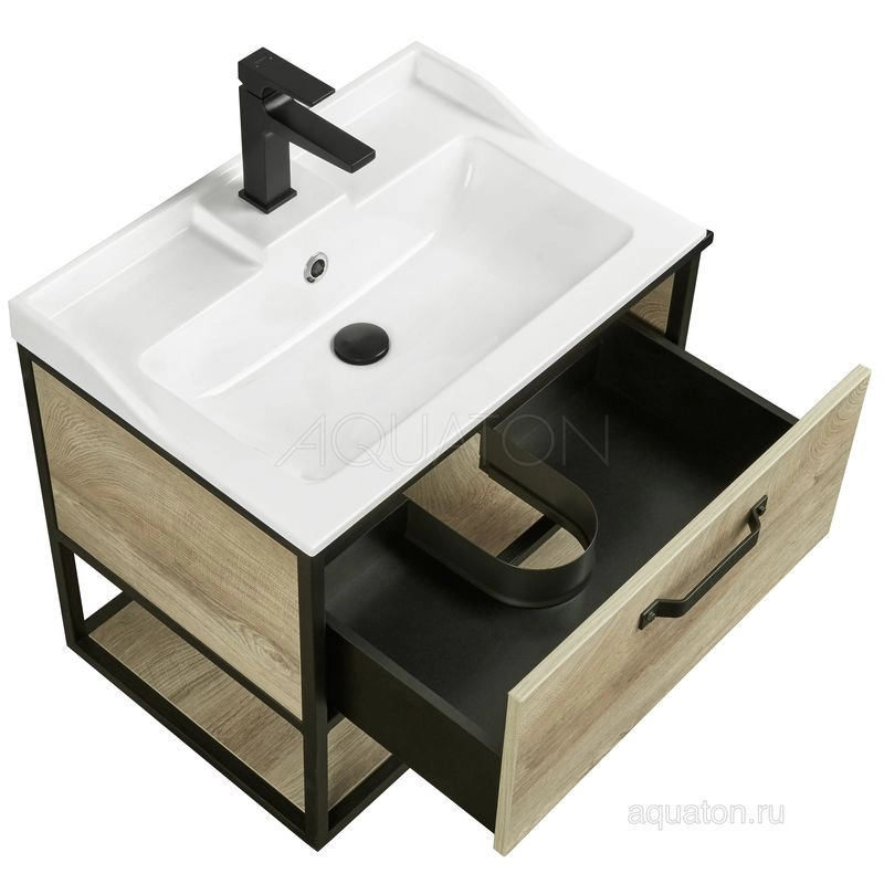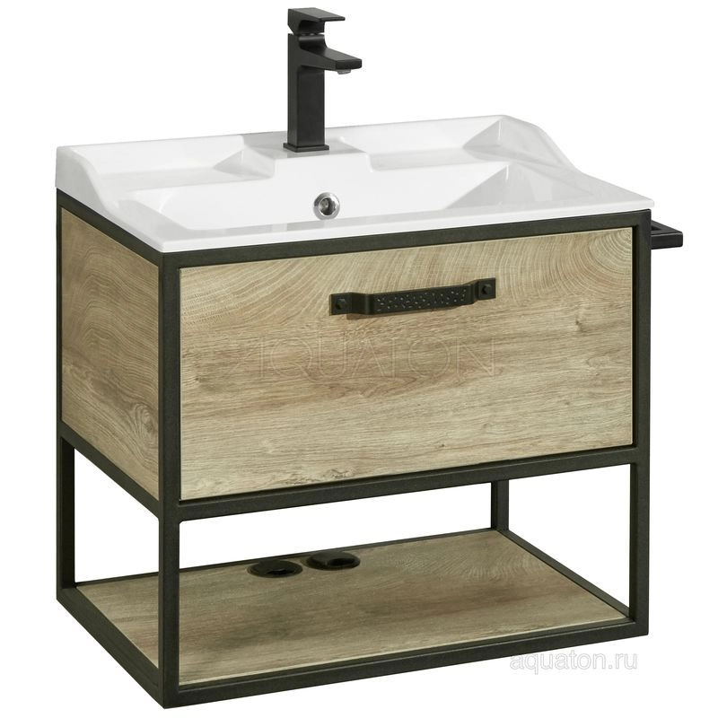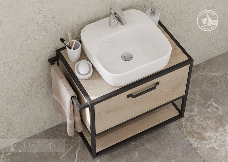 Тумба Лофт Фабрик 65 в цвете Дуб Эндгрейн – это сочетание натурального древесного декора и благородства металла. Удобный вместительный ящик, снабженный направляющими плавного выдвижения, и открытая нижняя полка позволят разместить все необходимое. Для данной тумбы доступно два варианта комплектации: с раковиной Фабиа 65 из прочного литьевого мрамора и с накладной керамической раковиной на столешницу (столешница заказывается отдельно). Оригинальная ручка идеально сочетается с металлическими черными профилями и полотенцедержателем. Полотенцедержатель можно установить опционально по желанию клиента слева или справа.