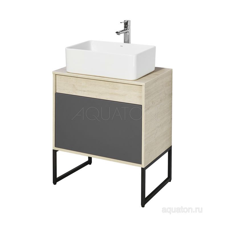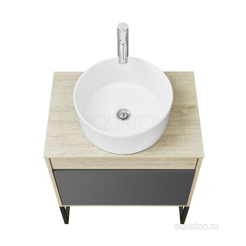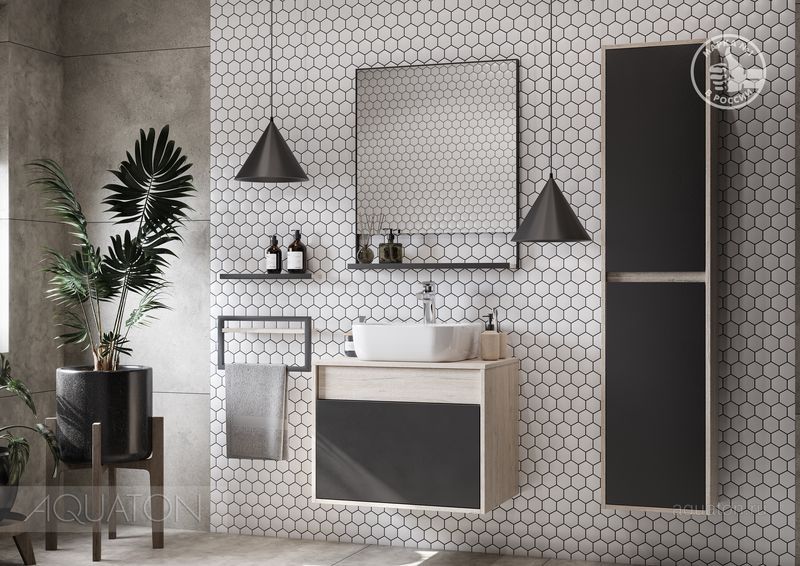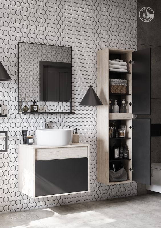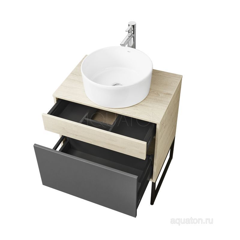 Модуль 65 коллекции Лофт Урбан функционально состоит из двух ящиков полного выдвижения. Верхний ящик тумбы комплектуется внутренней организацией пространства: в нем очень удобно хранить небольшие аксессуары и принадлежности. Вместительный нижний высокий ящик подойдет для более крупных предметов. Функция полного выдвижения ящиков и система открывания push-to-open делают использование тумбы особенно комфортным. Подвесной модуль может комплектоваться различными по размеру и дизайну металлическими черными опорами, высокими и низкими, которые крепятся непосредственно под модуль, кроме того, доступен вариант установки модуля и без опор. Корпус тумбы выполнен из влагостойкой ламинированной ДСП в цвете дуб орегон с текстурой натурального дерева, выгодно подчеркнутым фасадами из МДФ в пленке антрацит с эффектом soft touch.