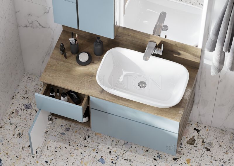 Коллекция Мишель - это новая коллекция AQUATON для влюбленных в цвет и дизайн! Насыщенный оттенок фасадов в пленке фьерд в сочетании с натуральным декором дуб рустикальный с самого утра поднимет настроение своим обладателям и обеспечит позитивный настрой. Тумба Мишель 100 очень вместительная и функциональная: слева располагается небольшой выдвижной ящик, идеально подходящий для хранения мелочей, под которым находится отделение со створкой, а справа у тумбы расположены два вместительных ящика полного выдвижения, снабженных доводчиками. Все элементы оснащены системой открывания push-to-open.
