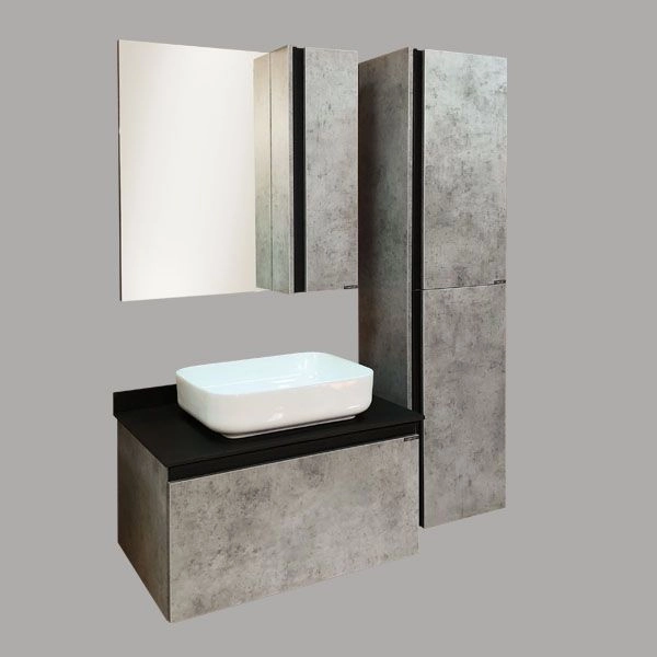 Корпус и фасады тумбы изготовлена из влагостойкого ДСП цвета "Бетон светлый".