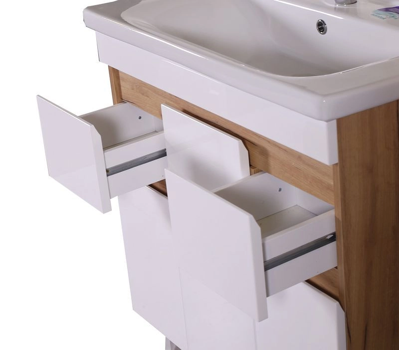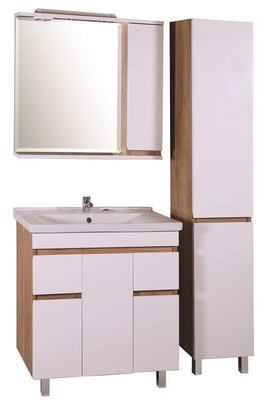 Тумба под раковину Миранда 80. Тумбочка имеет три двери и два выдвижных верхних ящика. Дверки оснащены доводчиками и имеют плавное закрывание. Комплектуется ножками 2 хром+2 пластик. Дополнительно крепится к стене.