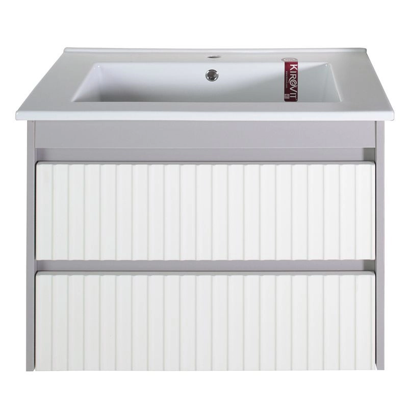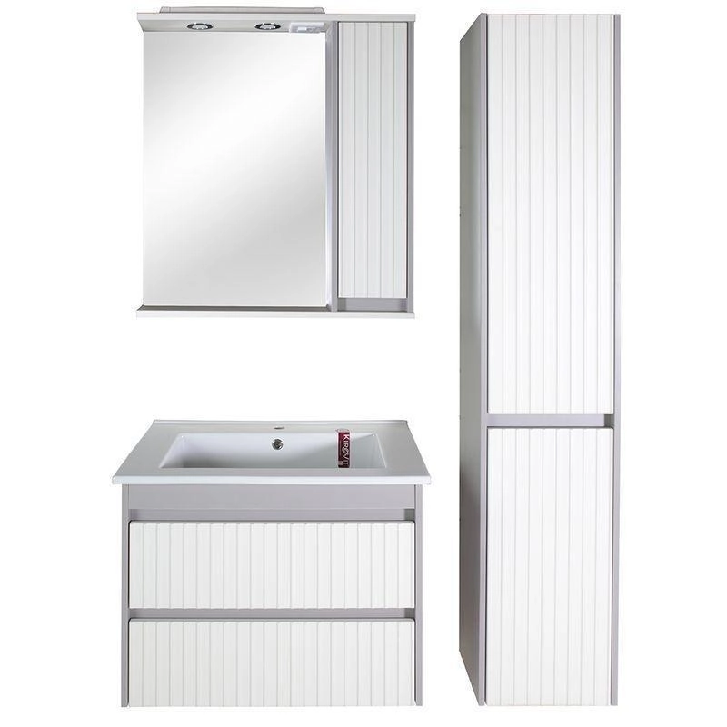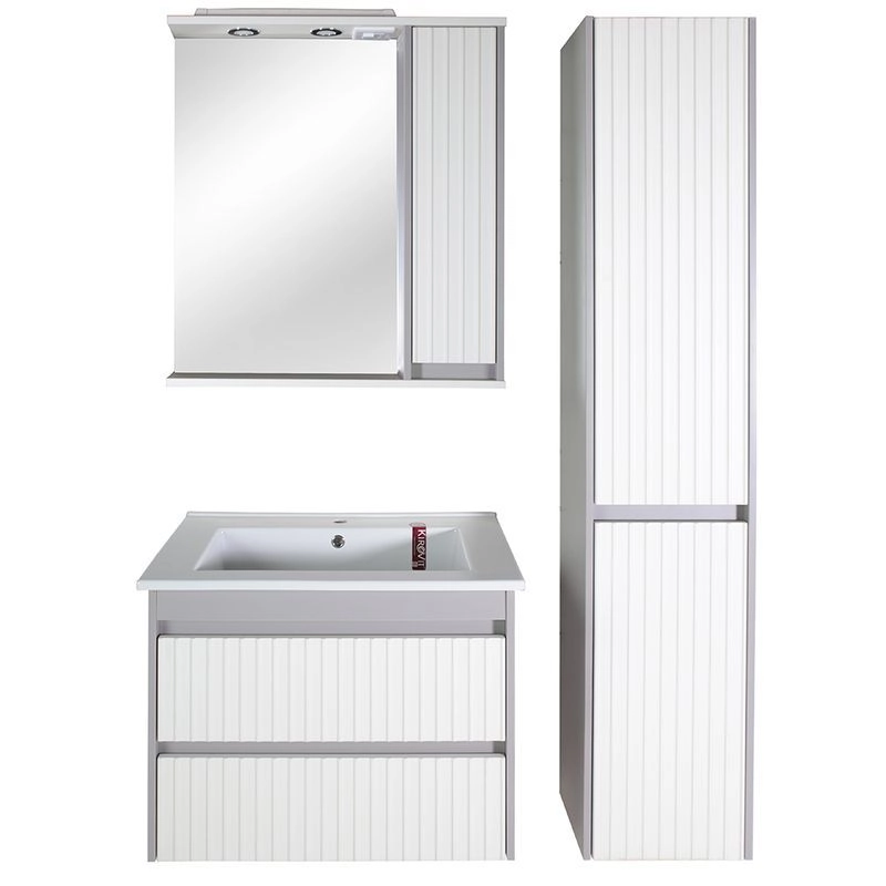 Модель изготавливается в современном стиле и сочетает в себе корпус из влагостойкого ЛДСП и рифленые фасады из МДФ .