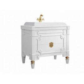 Механизм открывания : Выдвижные ящики. Высокоглянцевое Покрытие. Цвет корпуса Белый глянцевый поталь золото. Цвет фасада Белый глянцевый поталь золото (110).