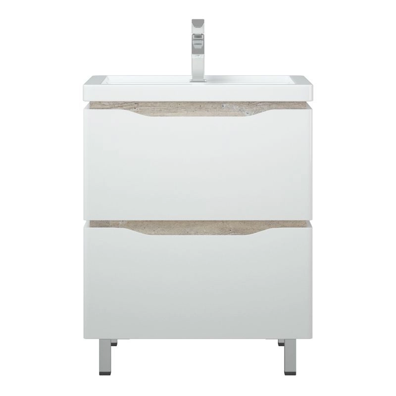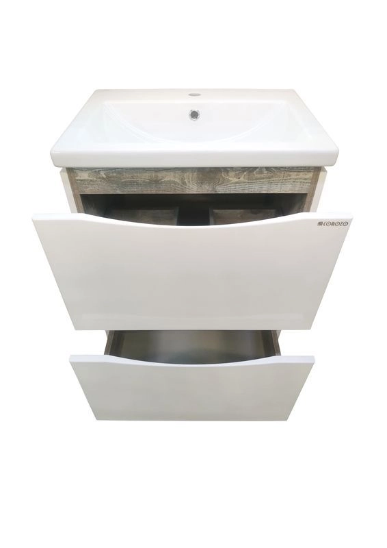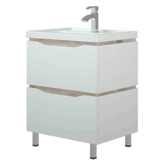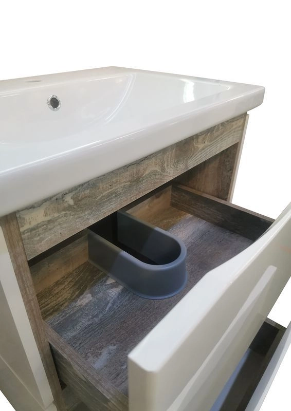 Тумба Бостон оснащена 2 выдвижными ящиками на направляющих скрытого монтажа с доводчиками. Верхний ящик высотой 80 мм с выпилом под коммуникации, нижний высотой 130 мм. Фасады не имеют ручек, однако удобный конструктив тумбы позволяет очень комфортно открывать фасады. Особенностью тумбы являеется наличие двойных боковин. Внутренние боковины из ЛДСП, внешние из ЛДСП, покрашенного в глянцевую эмаль. У тумбы 4 металлические опоры. Фасады - МДФ с белой глянцевой эмалью.