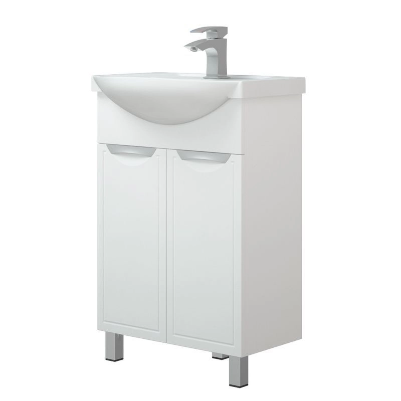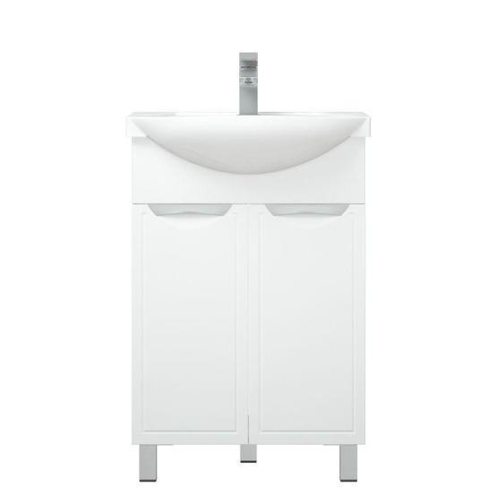 Тумба Монро 60 оснащена 2 дверцами, позади - 1 полка. На дверях - петли с доводчиками. У тумбы 2 металлические опоры, 1 пластиковая. Коромысло и фасады - МДФ в плёнке.